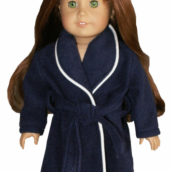 Your doll will love slipping into this luxurious polar fleece robe! Crafted from soft, warm fabric, this charming piece features off-white piping along the collar and comes with a matching tie belt for a polished look. Perfect for American Girl dolls, it's ideal for cozy mornings, relaxing evenings, or pretend spa sessions. The thoughtful details make this robe a delightful addition to any doll's wardrobe, combining comfort and style in one fabulous package.
