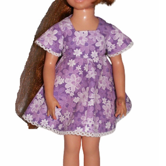 Let your Crissy doll shine on in this charming flutter sleeve dress! Delicate lace edging adds a touch of femininity. The convenient back Velcro closure means quick changes so playtime never stops. Designed for the 18-inch dolls, this dress is perfect for tea parties, adventures, or just looking fabulous.
