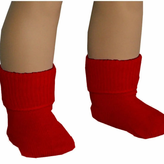 Fold-over socks fit most dolls 15-22" with average size feet.