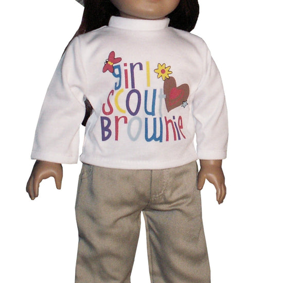 Get your doll ready for adventure with this playful Girl Scout Brownie Set! It includes a Girl Scout Brownie tee shirt, khaki twill pants, and a matching twill bucket hat—perfect for exploring and making memories on every pretend camping trip.