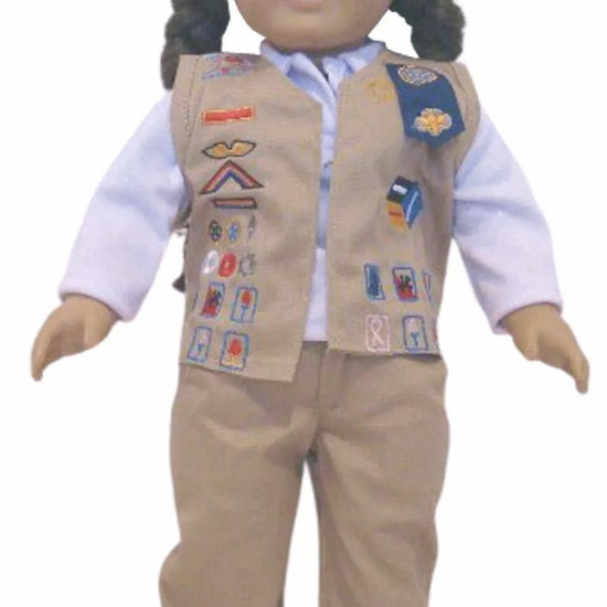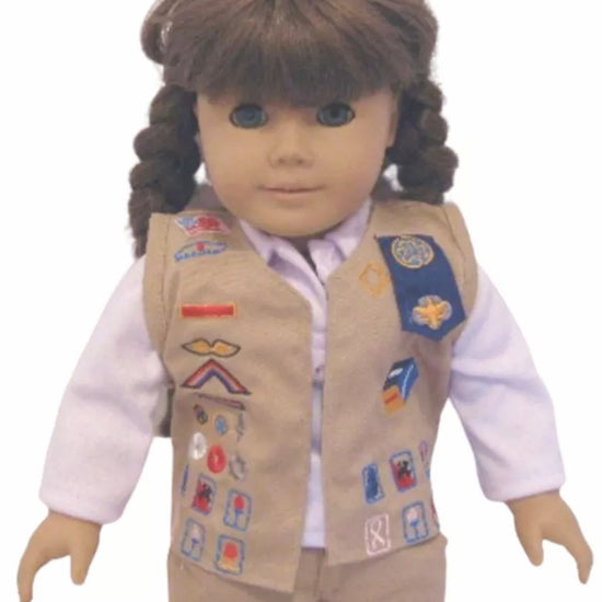 Get your doll ready for fun with this playful Girl Scout Cadet Set! It features a khaki twill vest, matching pants, a crisp white shirt, and khaki socks—perfect for all her adventurous outings and imaginative play.