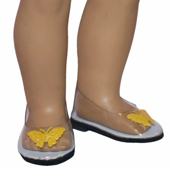 Clear "Glass" w/ yellow-gold butterfly slippers for Cinderella and princess dresses.