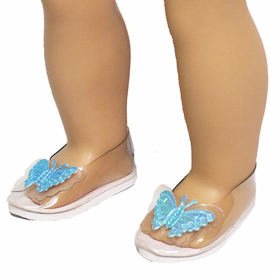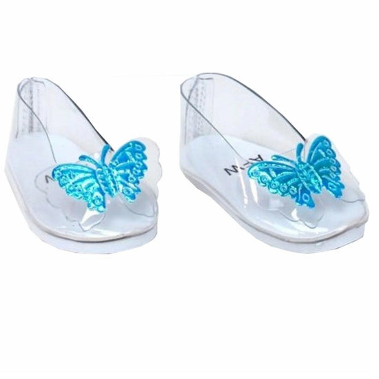 Clear "Glass" w/ blue or yellow-gold butterfly slippers for Cinderella and princess dresses.