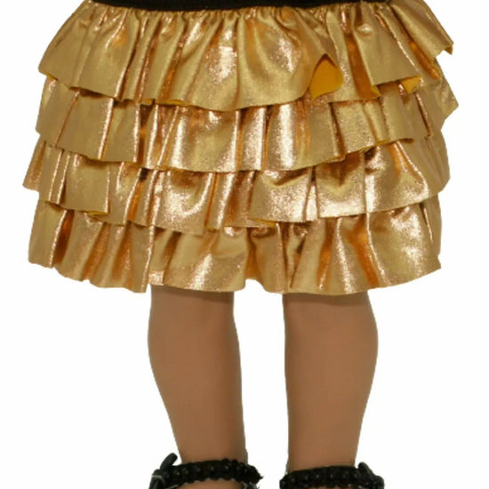 Get ready to boogie with this totally rad Gold Lamé Ruffled Skirt! Channeling retro 80's vibes, this show-stopping piece features shimmering gold fabric with cascading layered ruffles that demand attention. Perfectly sized for American Girl dolls, it's the ultimate statement piece for disco-inspired playtime, themed dress-up sessions, or whenever your doll wants to shine bright like a disco ball. Mix it with bold colors and fun accessories for maximum nostalgic fun!