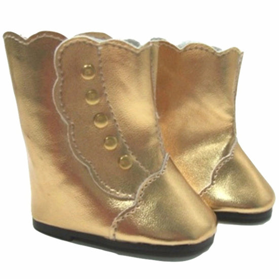 Cecile & Marie Grace reproduction gold Victorian style boots close with Velcro.