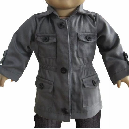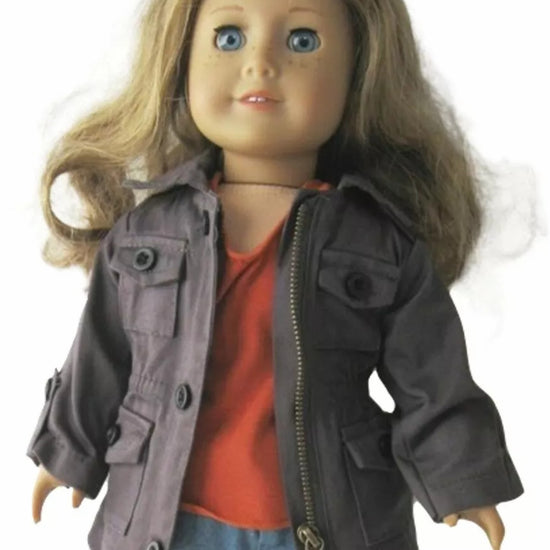 Keep your American Girl doll cozy and chic in this charcoal gray twill anorak jacket. The relaxed anorak cut is perfect for layering, while the sturdy twill fabric gives it a polished, put-together look. Whether she's heading out for a casual day or bundling up for cooler weather, this versatile jacket pairs effortlessly with skirts, pants, and dresses for endless styling possibilities.