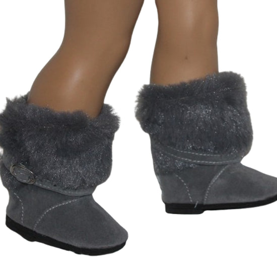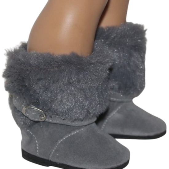 Bundle up your 18" American Girl doll in these cozy gray furry boots with charming buckle details. Perfect for winter adventures and stylish storytelling, these plush boots add warmth and personality to any outfit. Whether heading to a snowy expedition or a fancy outing, they're the ultimate accessory for doll fashion fun.