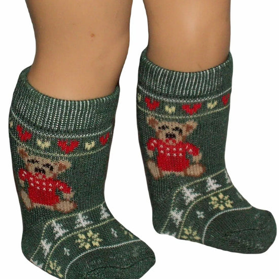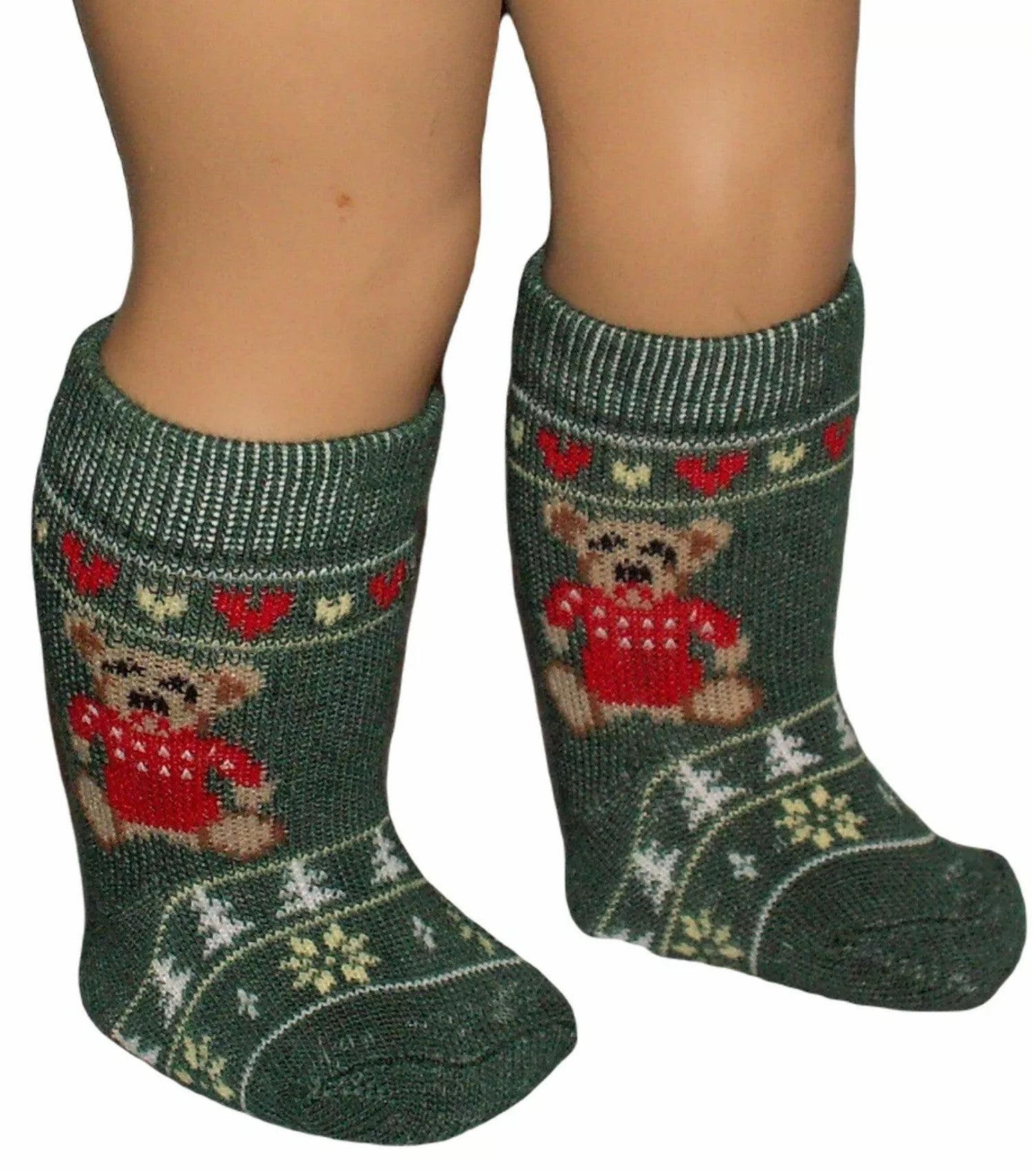 Dark green Christmas stocking bears knee high socks fit most dolls 15-21" with average size feet.