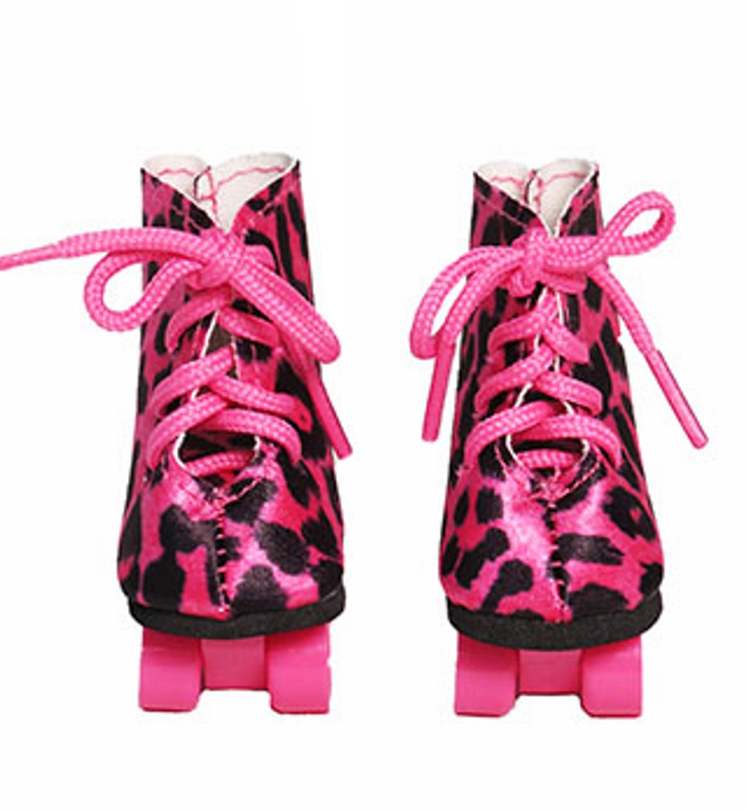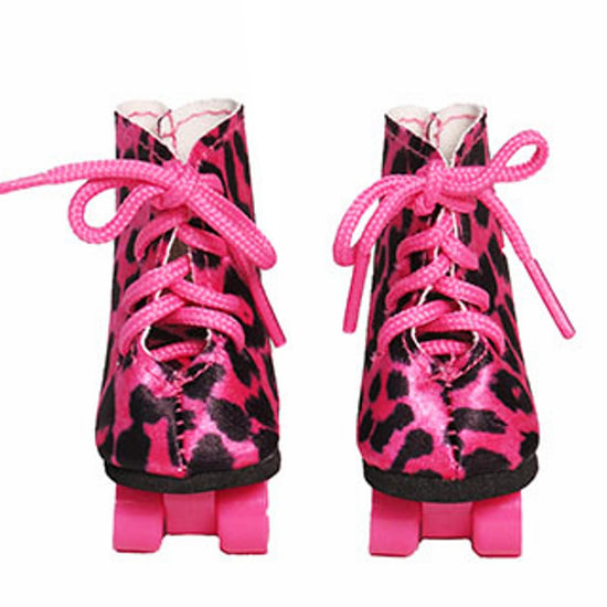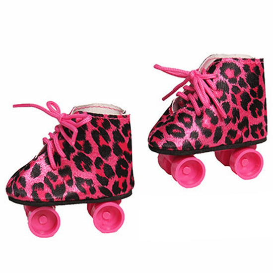 Get ready to turn heads with these hot pink leopard print roller skates for American Girl dolls. Complete with working wheels, these statement skates bring bold style and smooth rolling action to every doll adventure. Whether cruising around town or striking a pose, your doll will be the coolest skater on the scene.