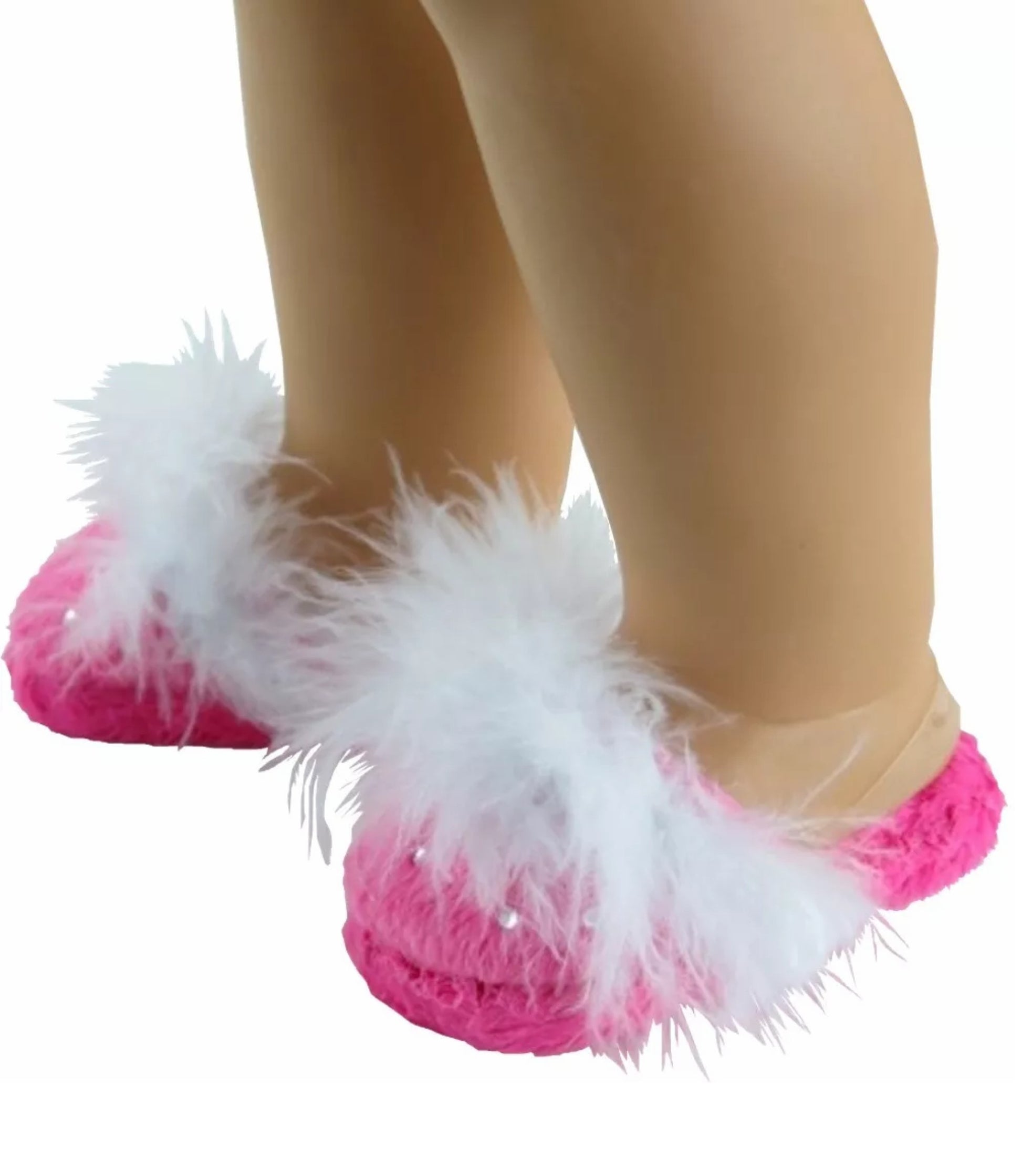 Hot pink slippers with rhinestone accents.