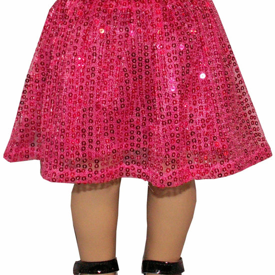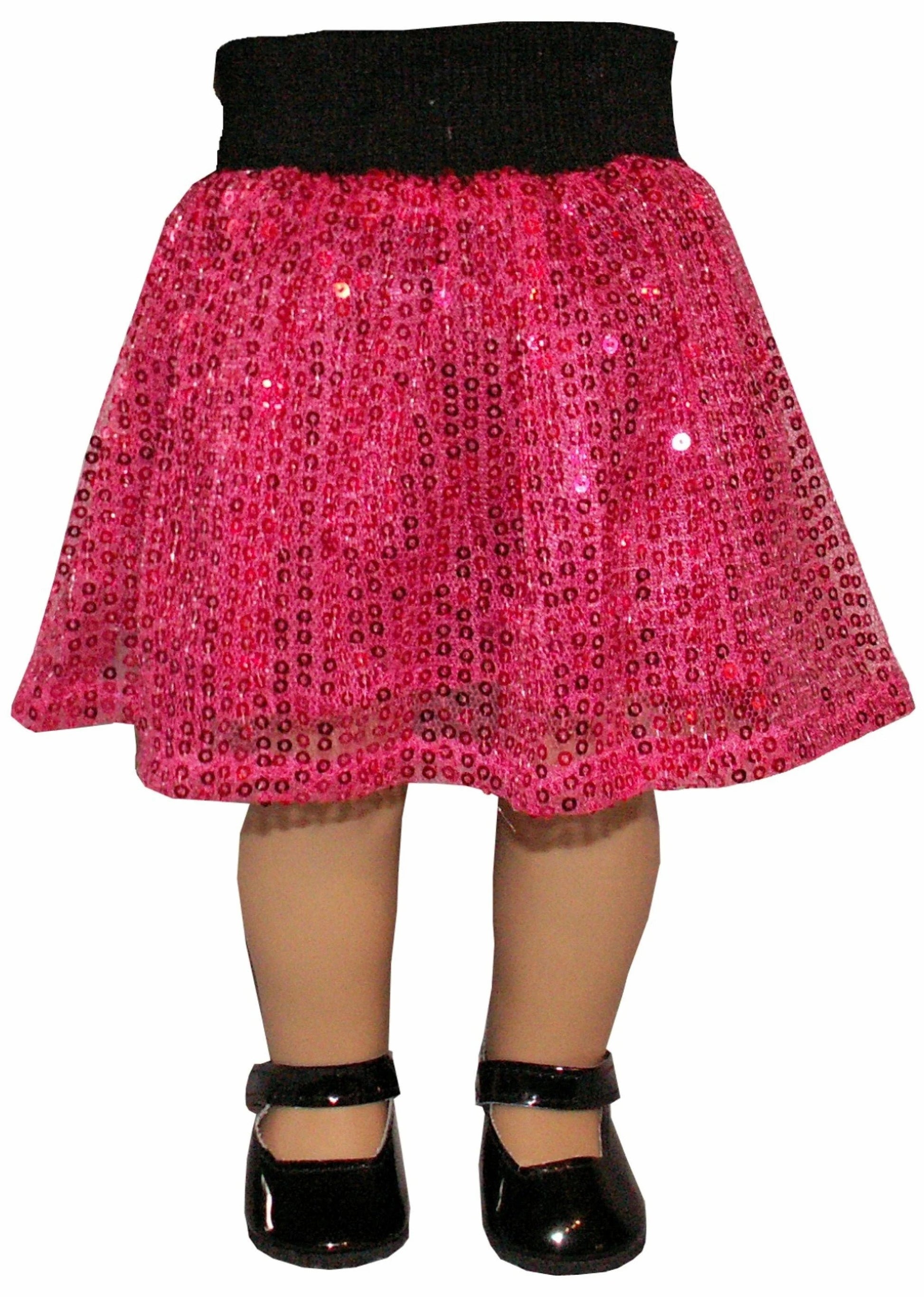 Hot pink sequin skirt has a black knit waistband and is lined.