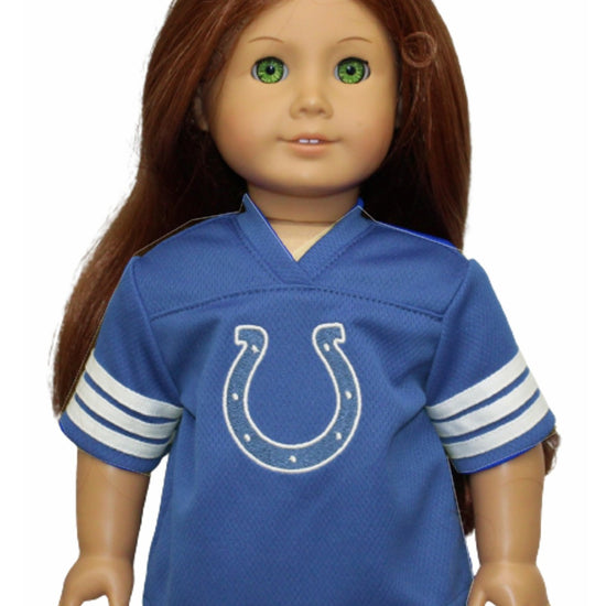 Cheer on your favorite team with this playful Indianapolis Colts-inspired jersey for American Girl dolls! Featuring the iconic Colts logo beautifully embroidered on the front, it’s perfect for little fans who love to show off team spirit in style. Crafted for a snug fit and easy dressing, this jersey brings fun game day vibes right to your doll’s wardrobe. Perfect for playtime or display, it’s a touchdown addition every Colts fan will adore!
