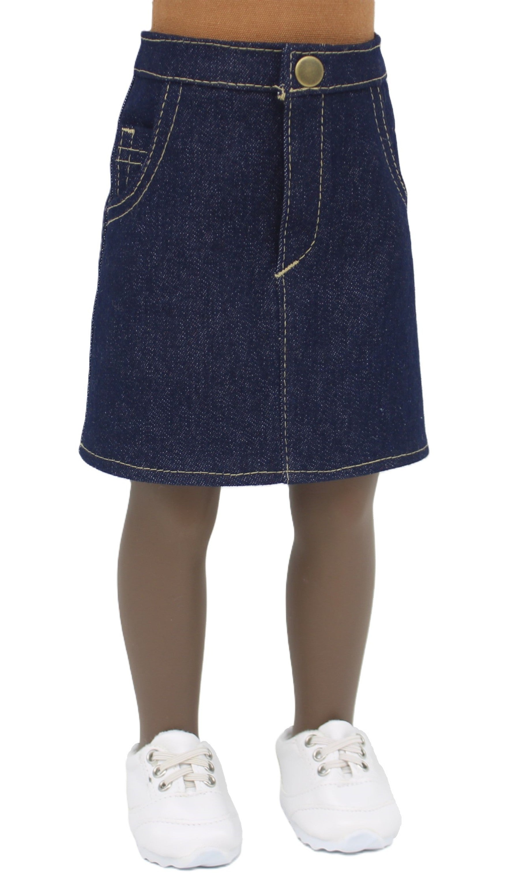 Designed for 21" Karito Kids dolls, this jeans-style skirt features a fitted waistband with functional pockets and a secure snap and Velcro closure. The denim version showcases contrasting stitching for added detail, while corduroy and twill options come with coordinating thread. A versatile piece that pairs easily with other doll outfits in your collection.