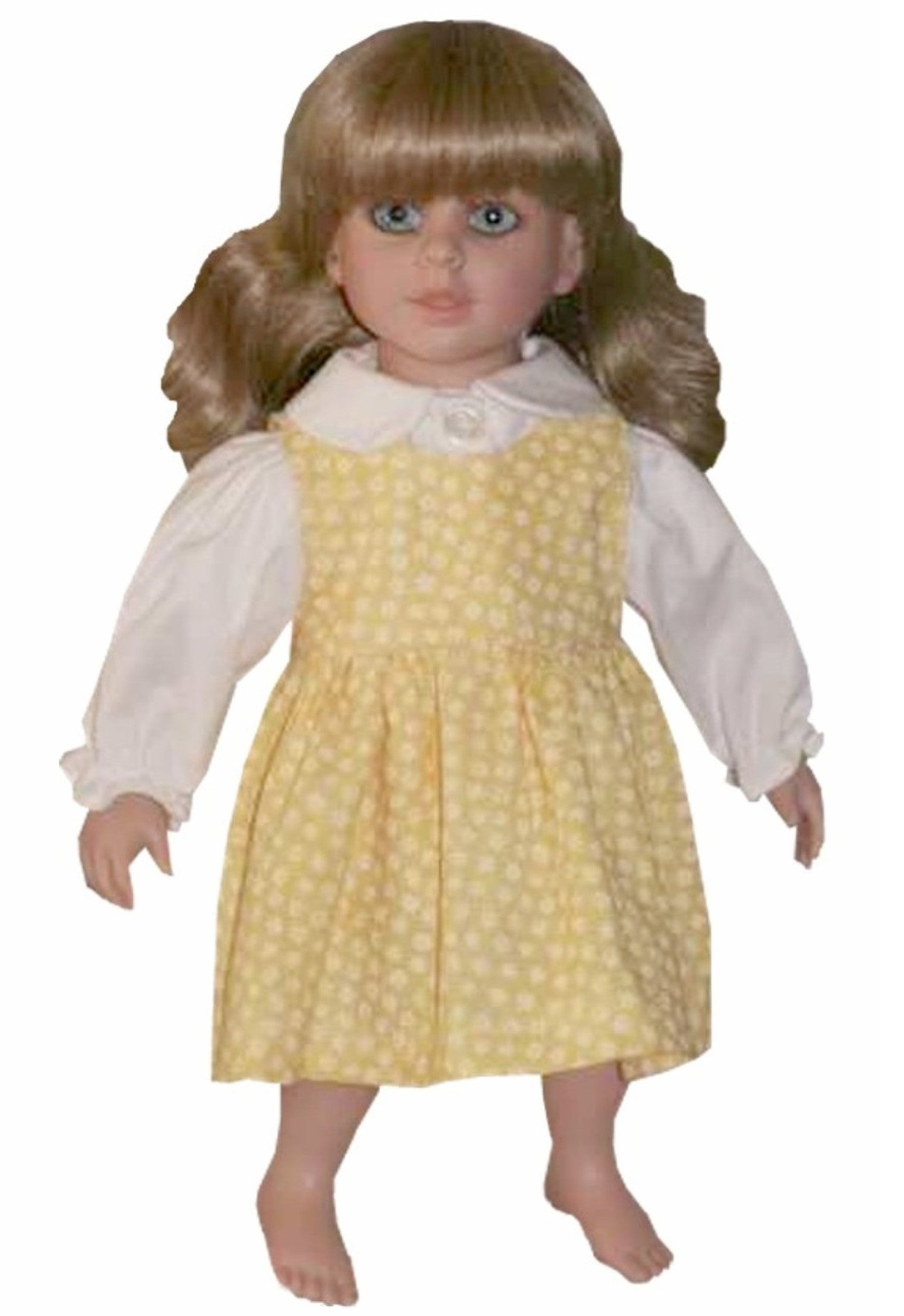 This playful jumper is designed just for your My Twinn Cuddly doll! It features a fully lined bodice and a full, gathered skirt that adds fun twirl factor. The back closes easily with Velcro, making dressing up quick and simple. Available in many cheerful fabrics to brighten your doll’s wardrobe!
