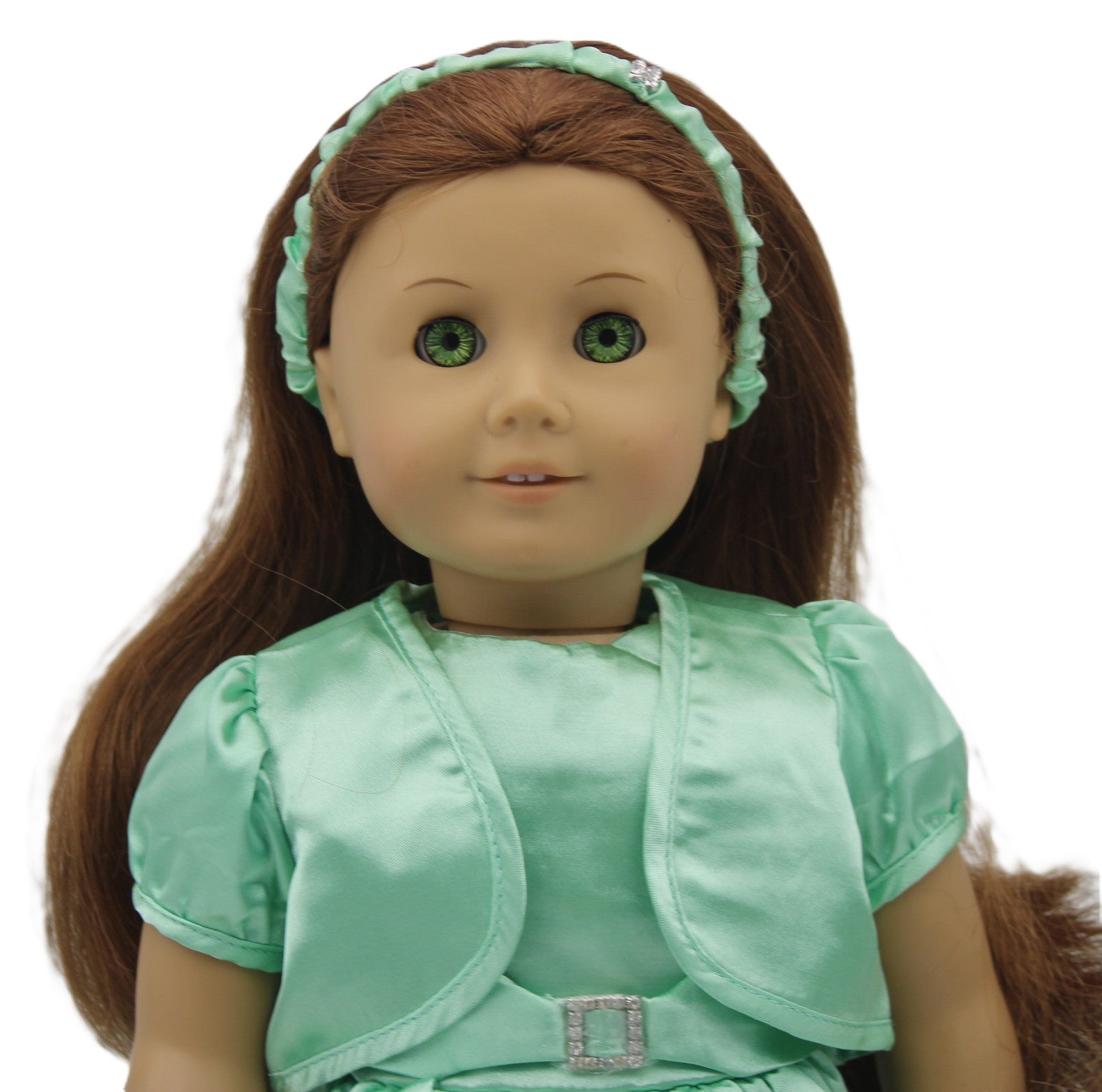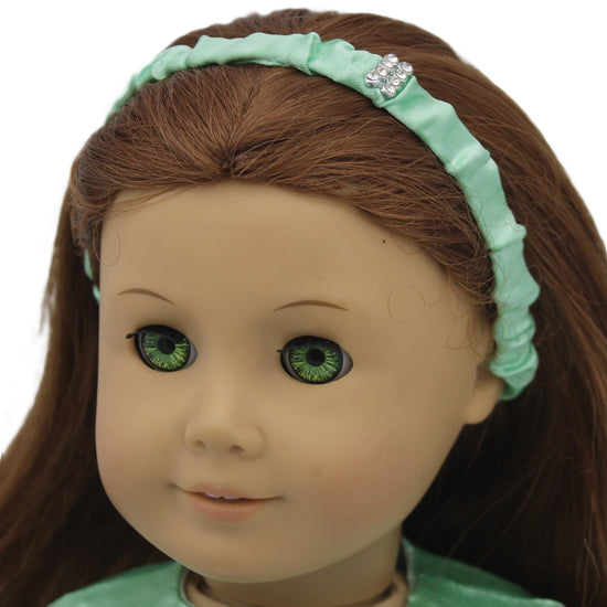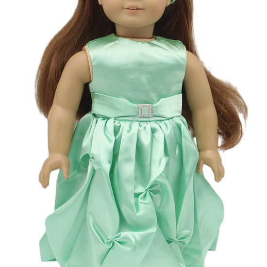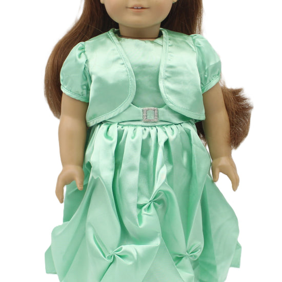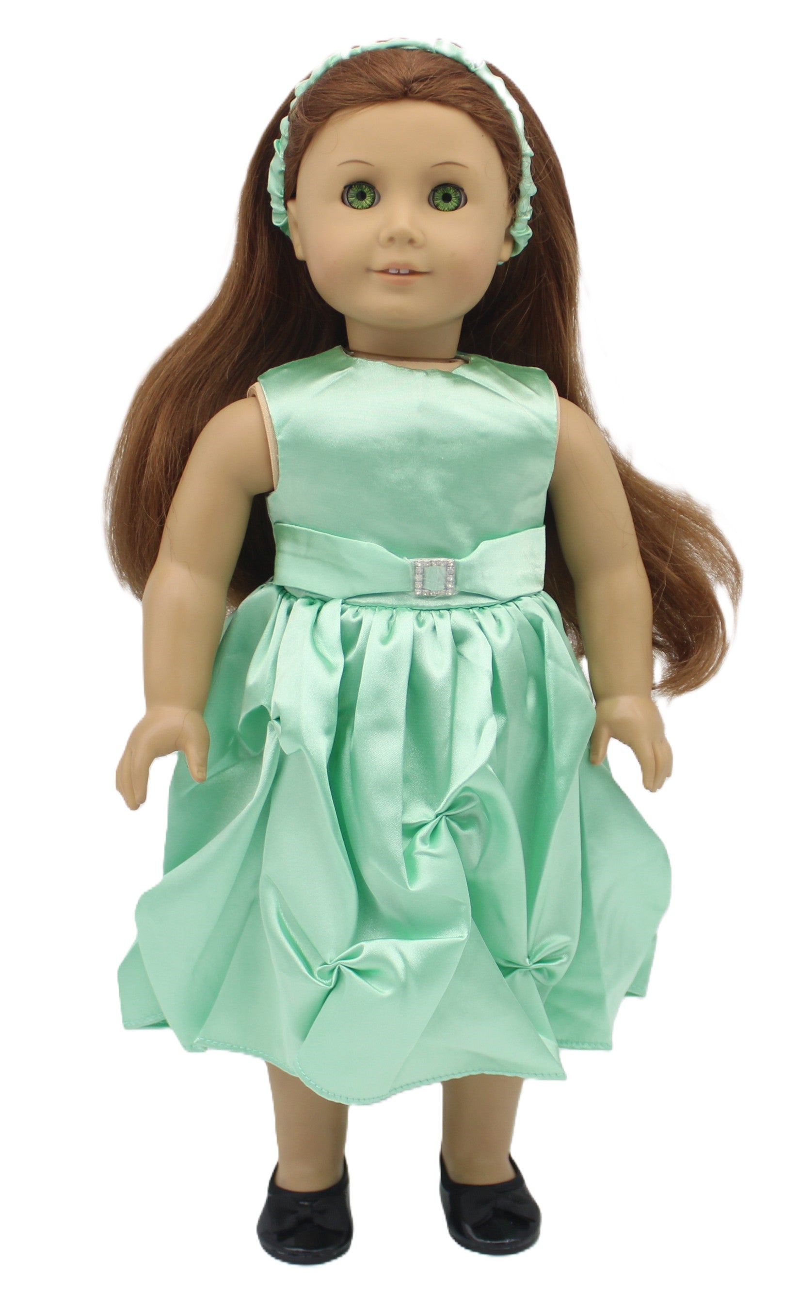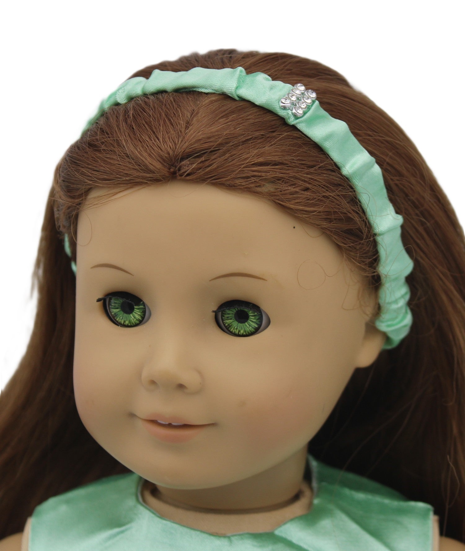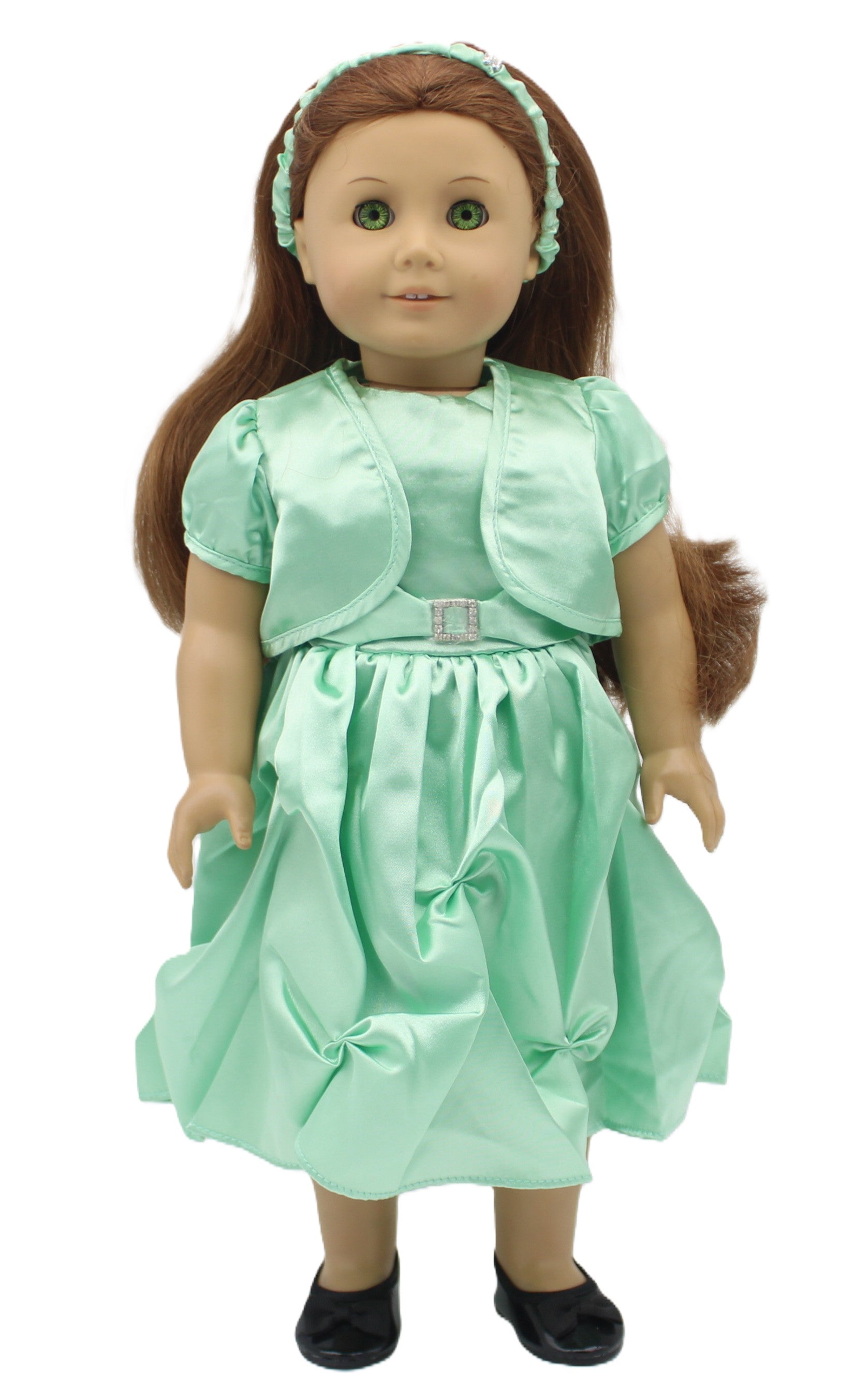 Light green sleeveless dress with jacket includes a matching headband with rhinestone accents.