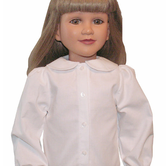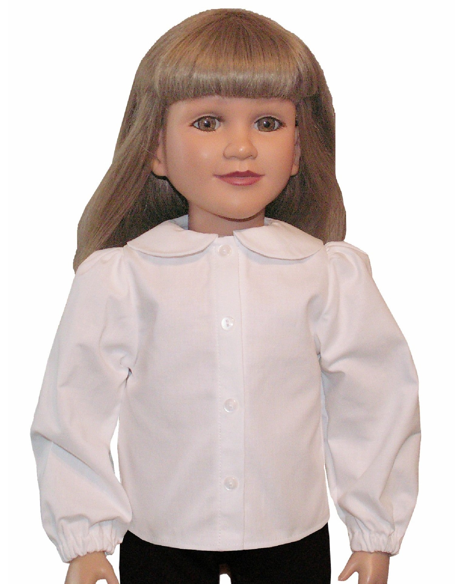 Add charm to your My Twinn doll’s wardrobe with this long-sleeve blouse featuring a sweet Peter Pan collar and gathered sleeves. Decorative buttons add a delightful touch, while the Velcro closure makes dressing easy. Available in many playful colors and prints, this blouse brings a dash of fun and elegance to any doll outfit.