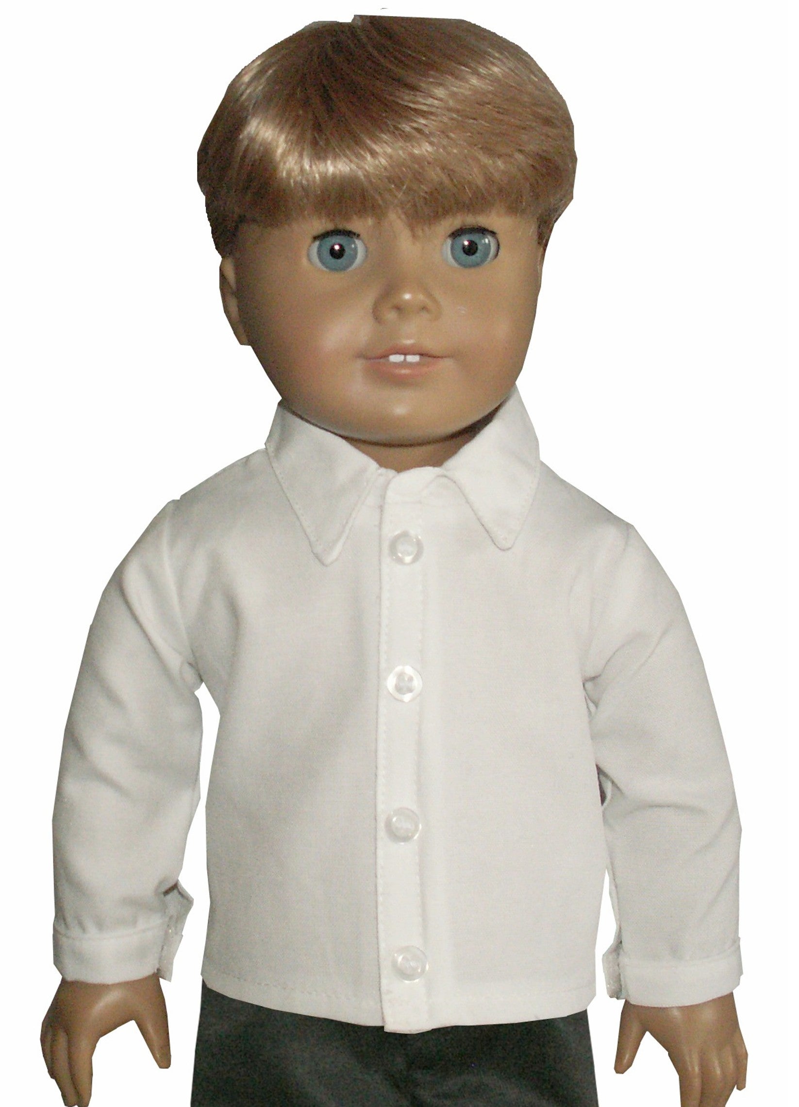 This long sleeve shirt with a crisp collar and fun decorative buttons is perfect for American Girl boy dolls. The Velcro closure makes dressing quick and easy, while the cozy sleeves keep doll outfits stylish all day long. Add a playful touch to doll adventures with this charming wardrobe staple!