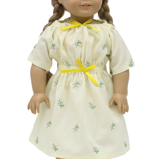 Grace inspired pale yellow floral nightgown with light green slippers.