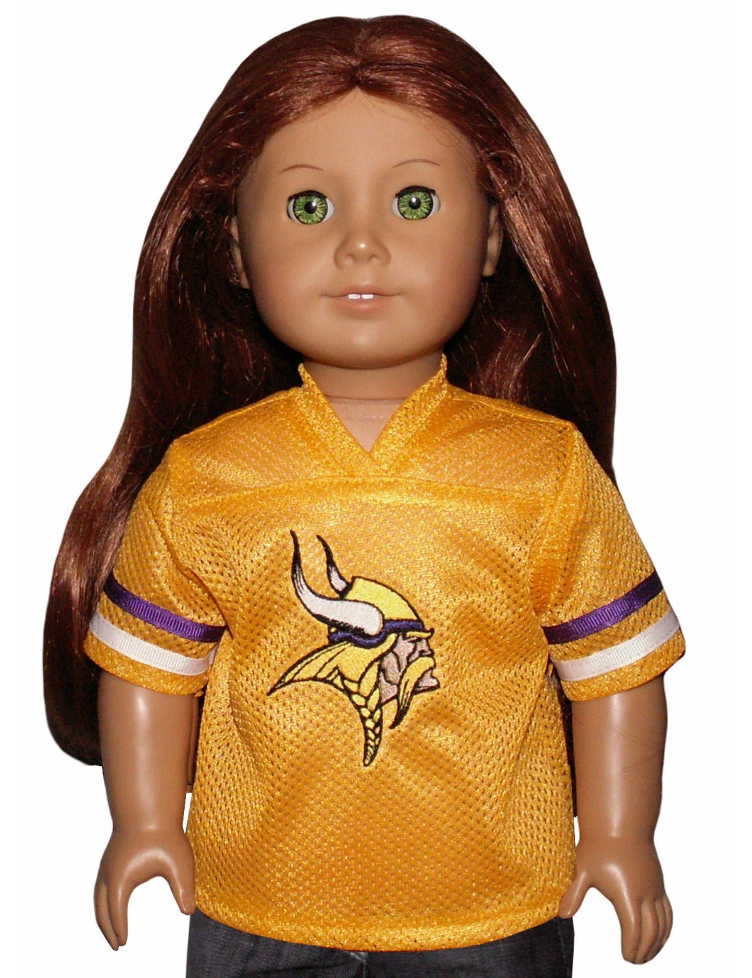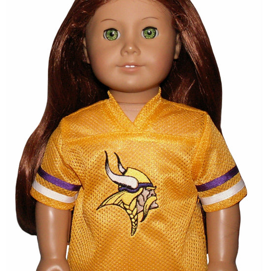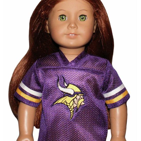 Let your doll show off some Viking pride with this playful Minnesota Vikings-inspired jersey. The vibrant logo embroidered on the front adds authentic team spirit, making it perfect for game day fun or everyday adventures. Crafted to fit American Girl dolls, this jersey is a stylish way to celebrate your favorite football team.