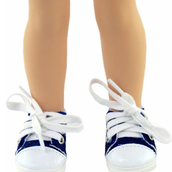 Step up your 14.5" WellieWishers doll’s style with these navy canvas sneakers. Featuring classic white laces and measuring about 2 1/8" by 1", they’re a perfect fit for everyday fun and adventure. Easy to mix and match for endless playful looks!