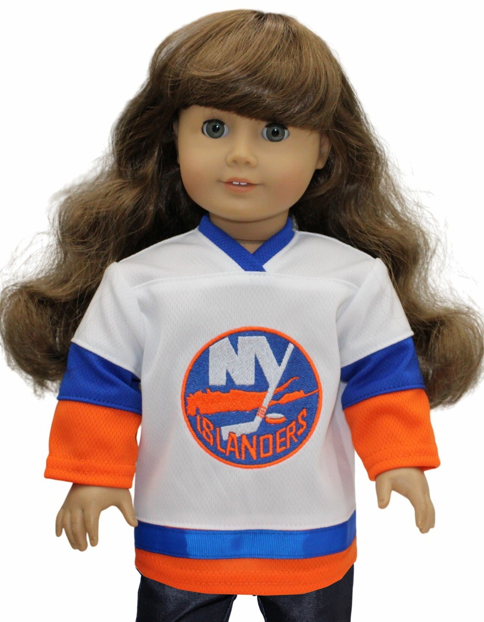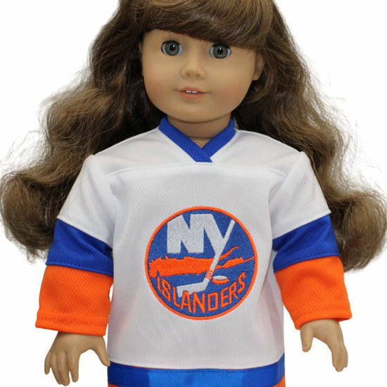 Show off your doll’s team spirit with this playful New York Islanders-inspired jersey! Featuring vibrant embroidery and long sleeves, it mimics the real thing. The back fully opens, making doll dressing quick and easy for endless game day fun.