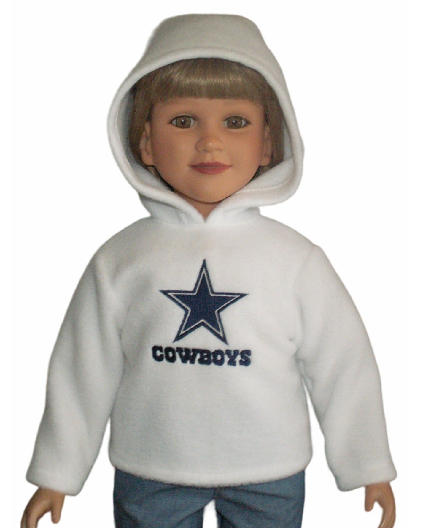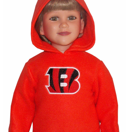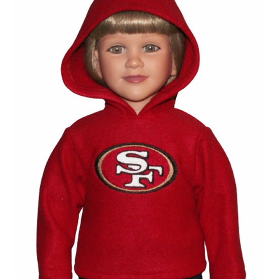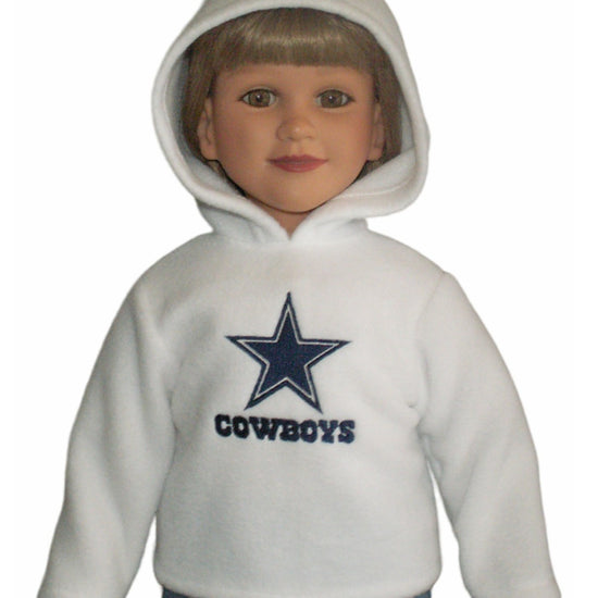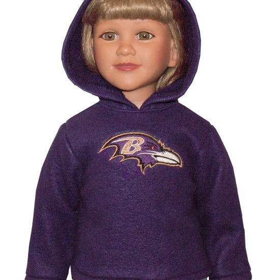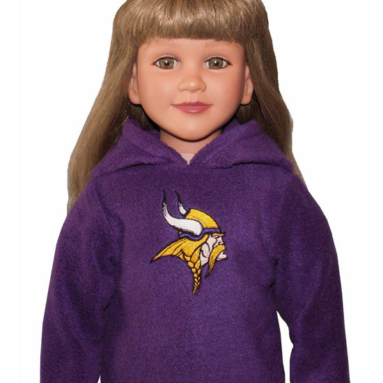 Keep your My Twinn doll cozy and game-ready with this pullover hooded fleece top! Featuring long sleeves and a fun embroidered logo, it fully opens in the back for easy dressing. Choose your favorite NFL team and color to show off team pride in style—each hoodie is made to order just for your doll’s winning look.