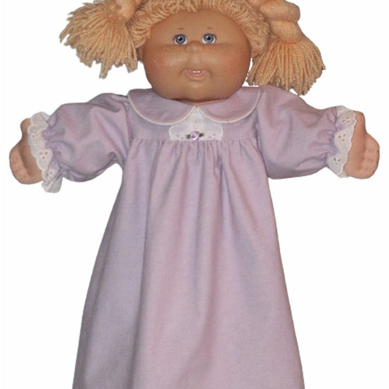 Cozy and charming, this flannel nightgown for 18" CPK dolls features delicate white lace at the bodice front and sleeve hems, adding a touch of sweetness. Its full gathered skirt creates a lovely silhouette, and the easy Velcro back closure makes dressing a breeze. Available in many fun colors and prints, it’s the perfect dreamy outfit for your doll’s bedtime adventures.