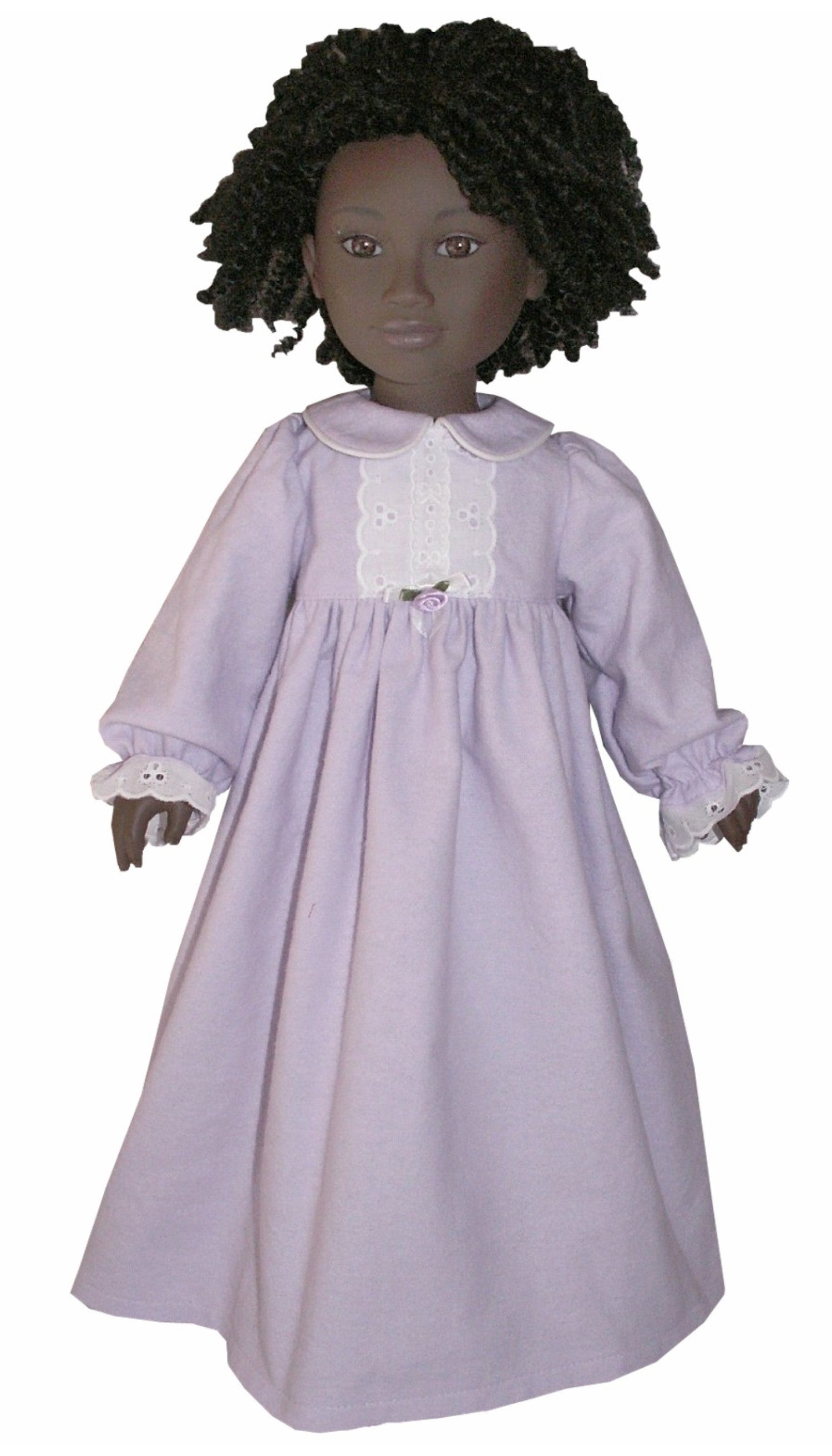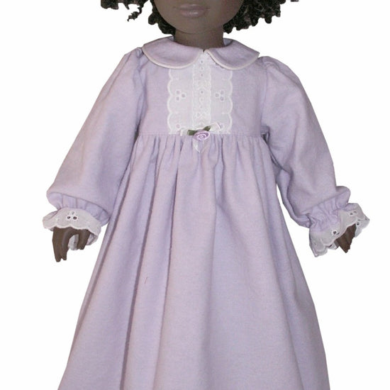 Cozy and charming, this flannel nightgown for 21" Karito Kids dolls features white eyelet lace at the bodice front and sleeve hems, adding a touch of sweetness. Its full gathered skirt creates a lovely silhouette, and the easy Velcro back closure makes dressing a breeze. Available in many fun colors and prints, it’s the perfect dreamy outfit for your doll’s bedtime adventures.