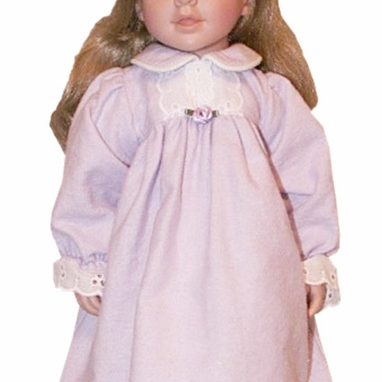 Cozy and charming, this flannel nightgown for My Twinn Cuddly dolls features delicate white lace at the bodice front and sleeve hems, adding a touch of sweetness. Its full gathered skirt creates a lovely silhouette, and the easy Velcro back closure makes dressing a breeze. Available in many fun colors and prints, it’s the perfect dreamy outfit for your doll’s bedtime adventures.