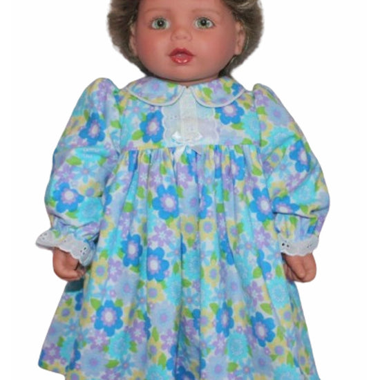 Sweet dreams await in this charming nightgown designed for 20" My Twinn toddler dolls. Delicate white lace adorns the bodice front and sleeve hems, adding an elegant touch to bedtime. The full gathered skirt twirls with movement, while a convenient back Velcro closure makes dressing your doll quick and easy. Perfect for cozy nights in or imaginative playtime adventures.