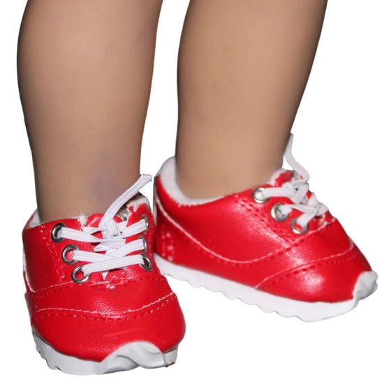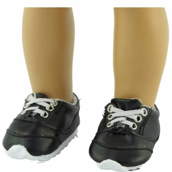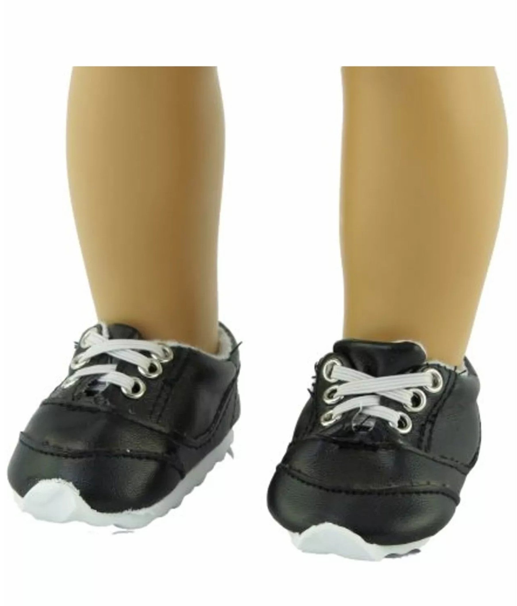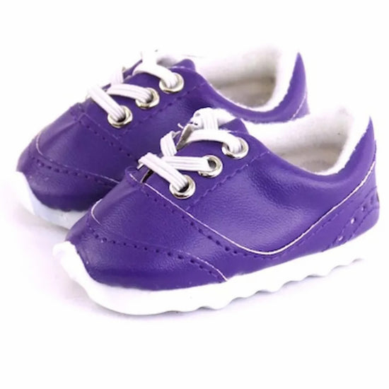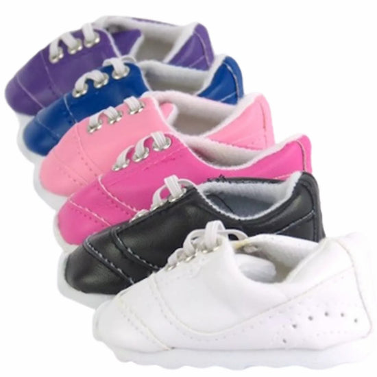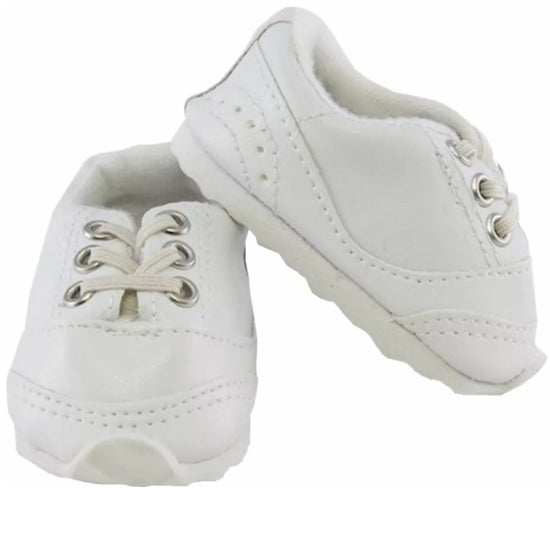 Lace-free fun awaits! These white sporty sneakers are designed for 18" American Girl size dolls and feature elastic laces that stretch for effortless on-and-off wear. No fumbling with tiny knots—just slip them on and go. Whether your doll is heading to the playground, exploring the neighborhood, or joining in everyday adventures, these versatile sneakers pair perfectly with any outfit and keep pace with all the action.