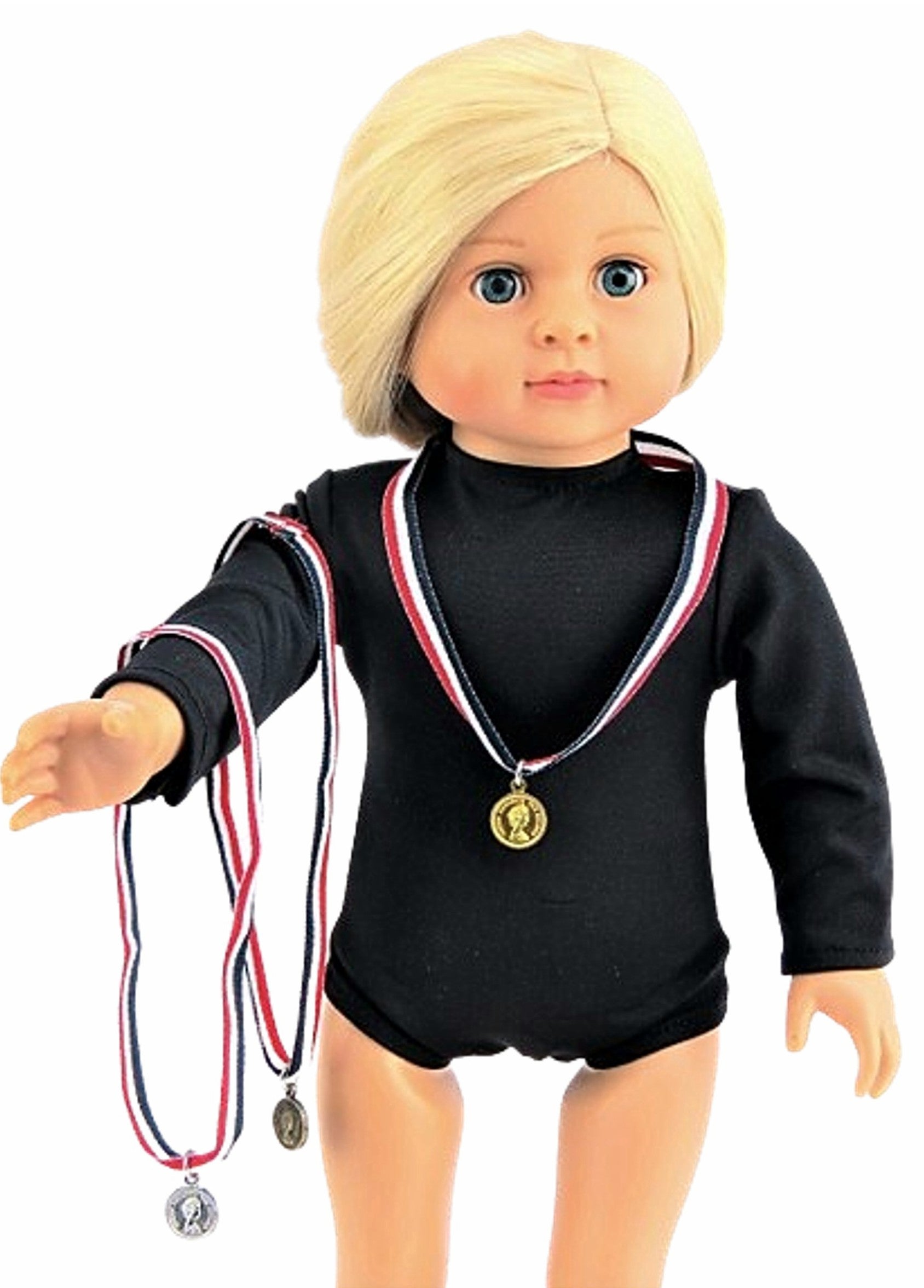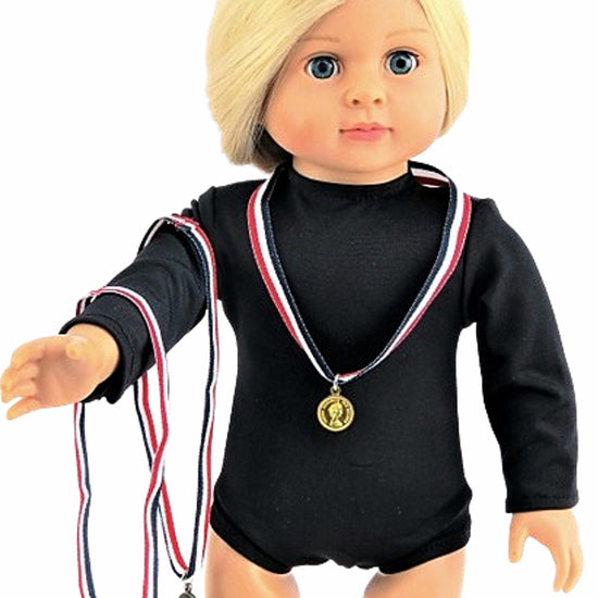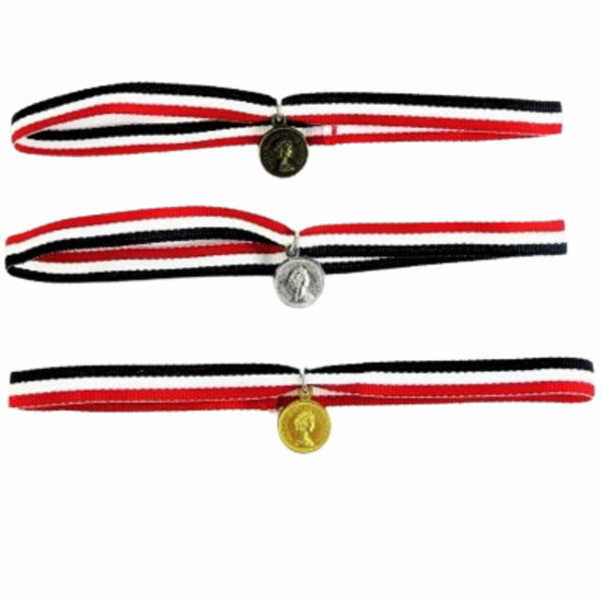 Gold, silver & bronze Olympic Sports Champion medals on ribbon.