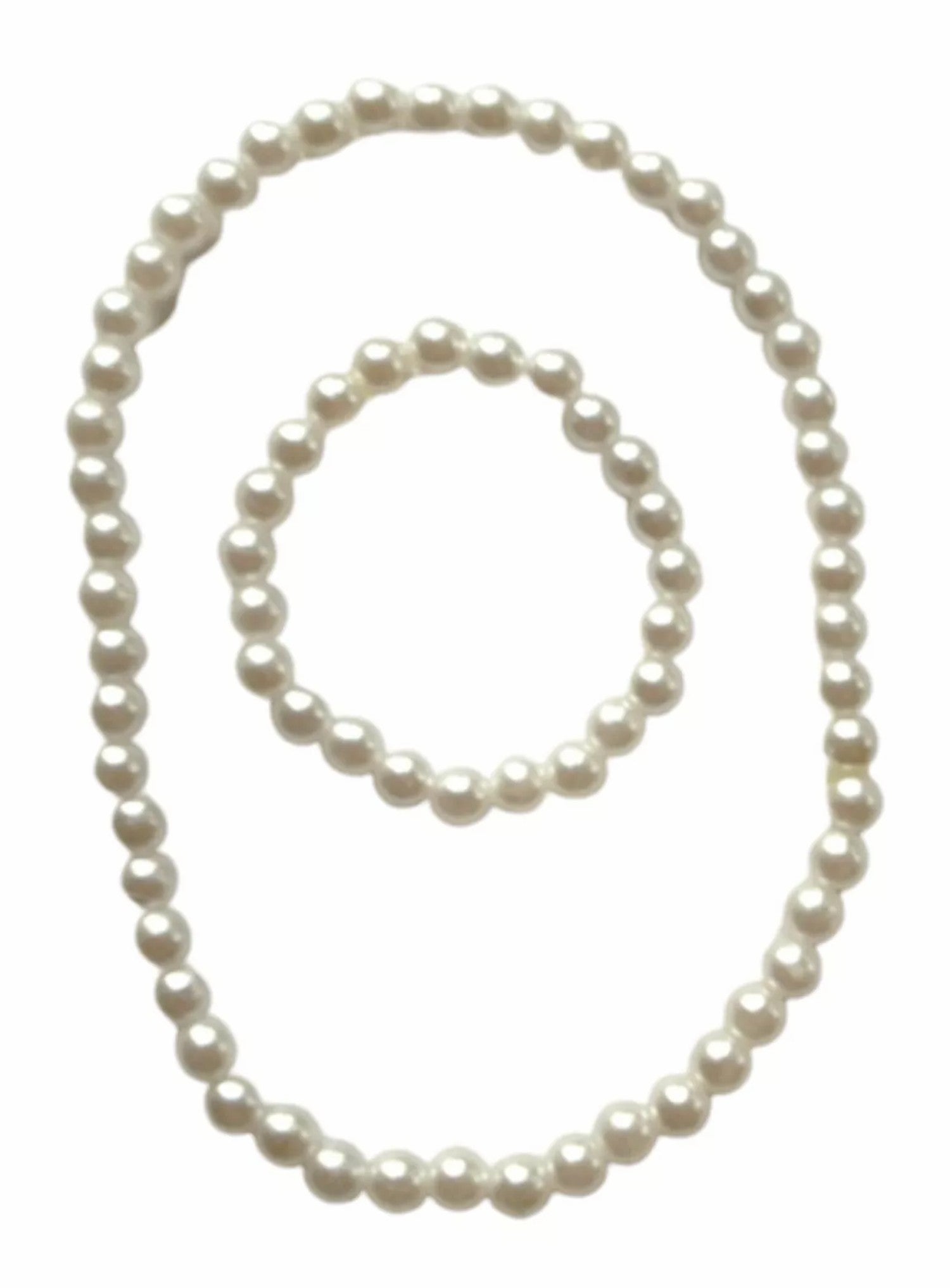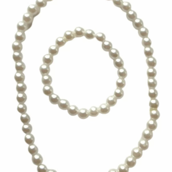 Add a touch of charm to your doll’s outfit with this playful faux pearl necklace and bracelet set. Designed on stretchy cords, these accessories are easy to put on and take off, making dress-up time even more fun. Perfect for dolls who love a bit of sparkle and sophistication!