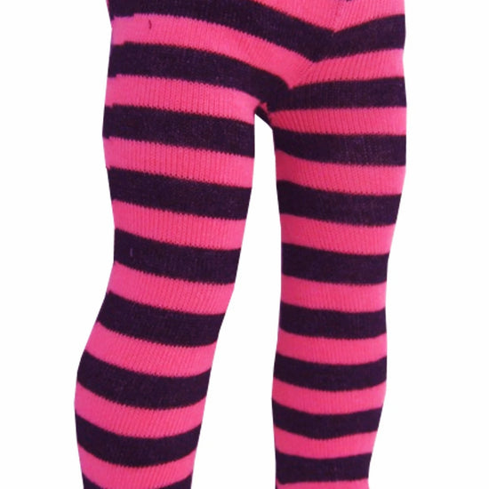 Dark pink and black stripe knit tights made to fit the 18" American Girl size doll.