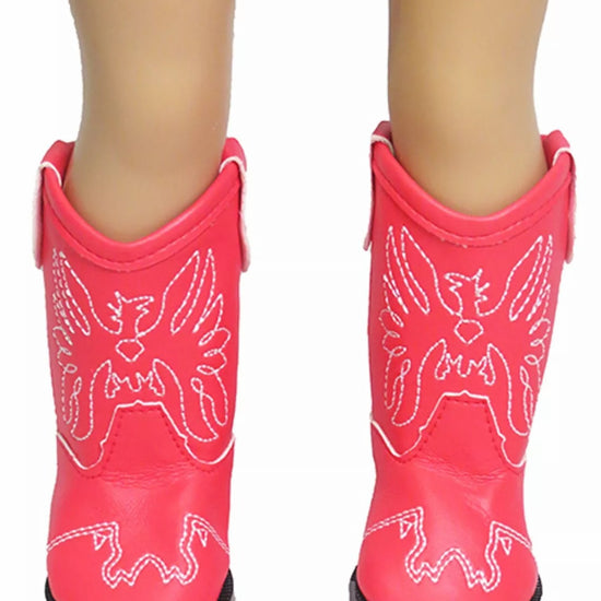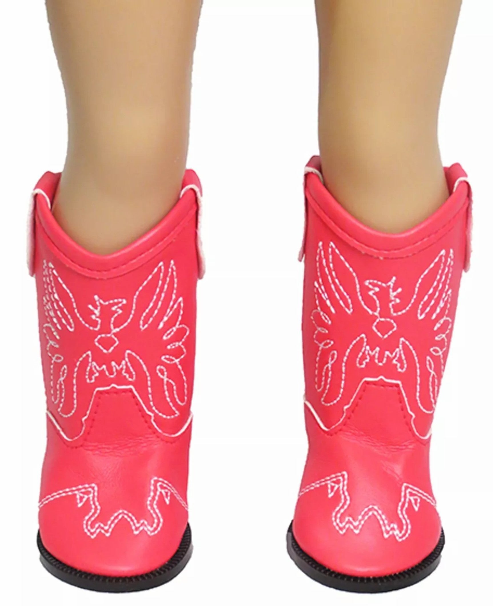 Bright pink doll cowboy boots feature an embroidered American Eagle on the front, adding a classic touch to your doll’s outfit. Designed for a comfortable fit, they bring a Western style perfect for imaginative play.