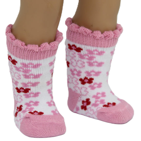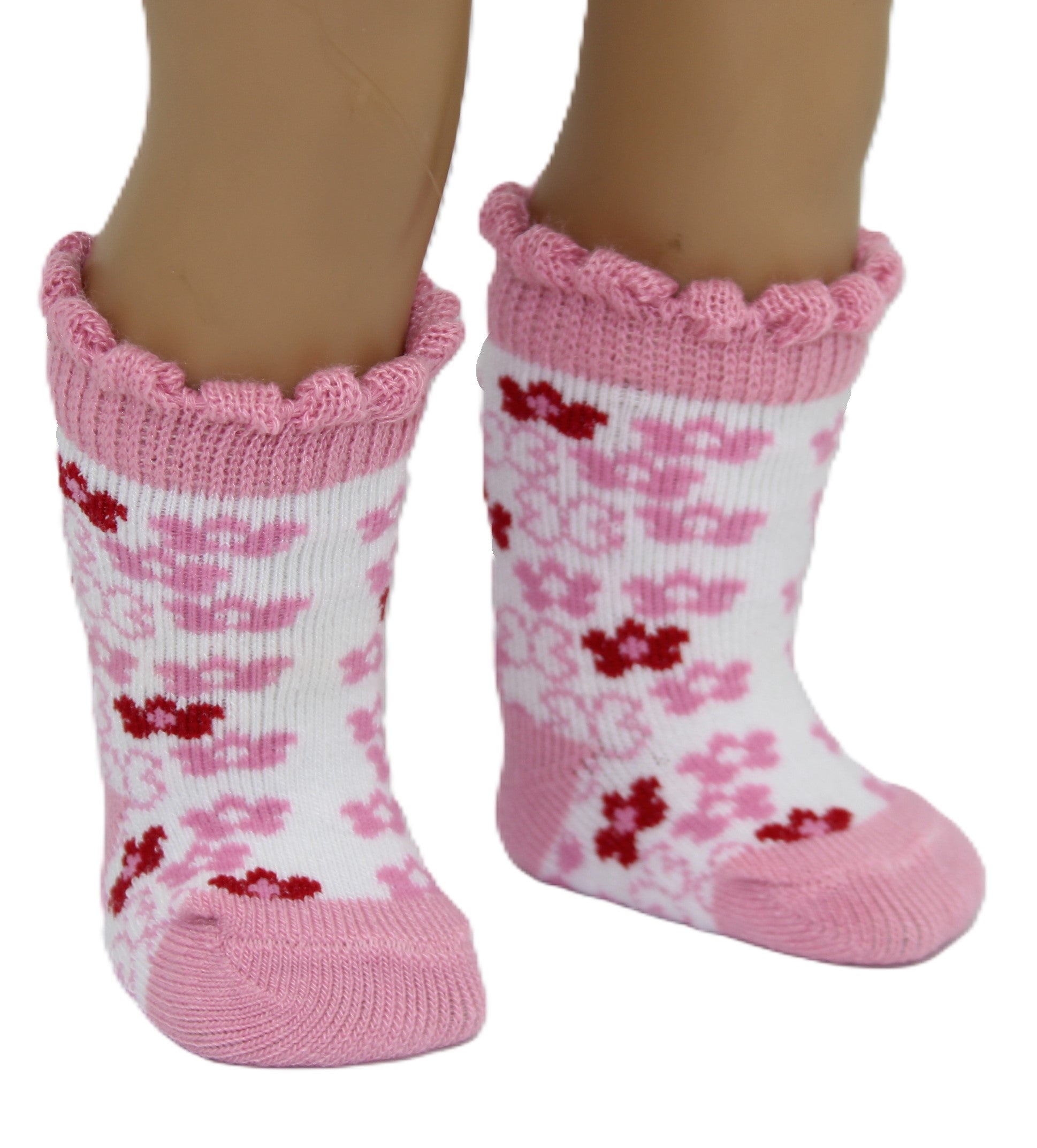 Pink floral socks fit most dolls 15-22" with average size feet.
