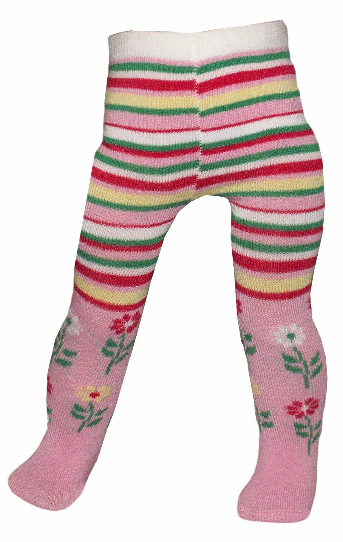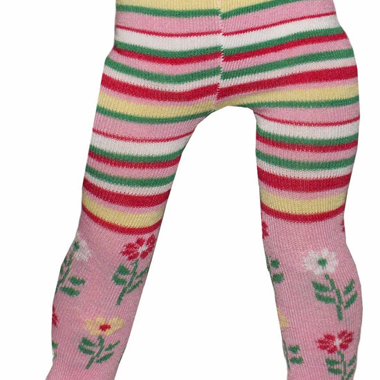 Pink floral and stripes tights made to fit the 18" American Girl size doll.