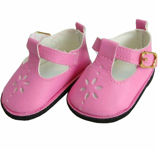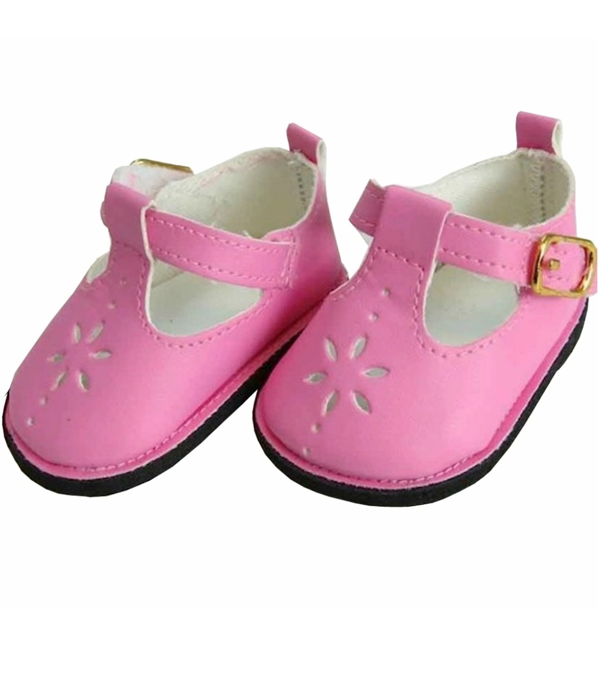 Pink Mary Jane style dress shoes with flower shape cut-outs.