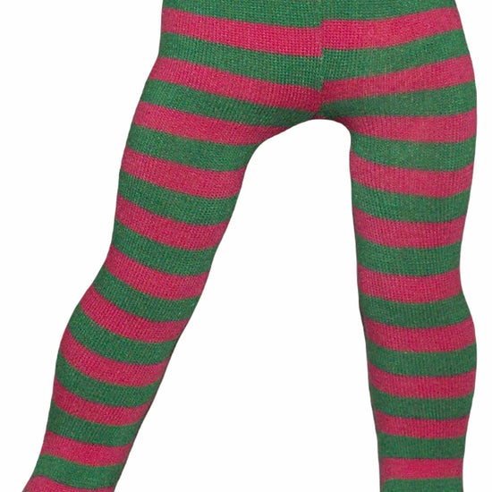 Pink and green stripe knit tights made to fit the 18" American Girl size doll.