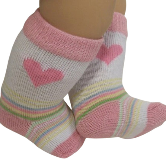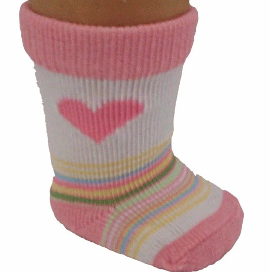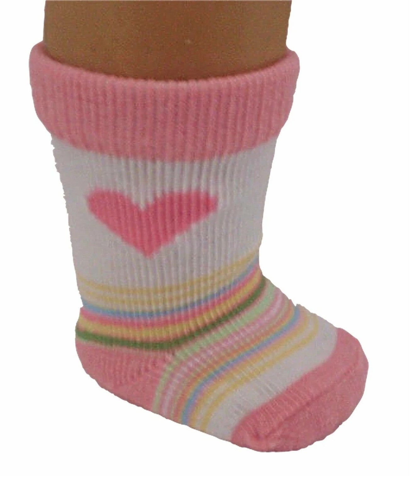 Add a splash of sweet style to your doll’s feet with these pink heart socks! Designed to fit most dolls between 15 and 21 inches with average-sized feet, these cozy socks bring a fun and loving touch to any outfit. Perfect for keeping your doll’s toes cute and comfy all day long.