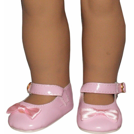 Add a splash of sweetness to your doll’s wardrobe with these pink patent Mary Jane shoes. Featuring cute bows, they’re the perfect playful touch to complete any outfit with style and charm.