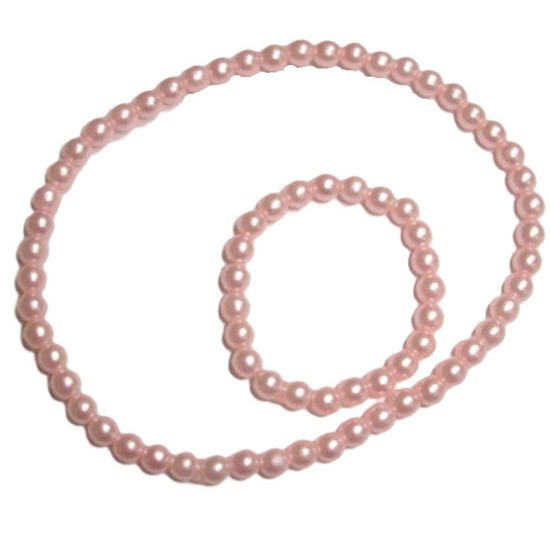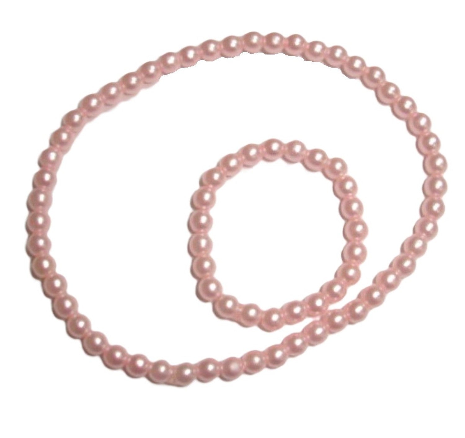 Faux pink pearl necklace and bracelet on stretchy cords.