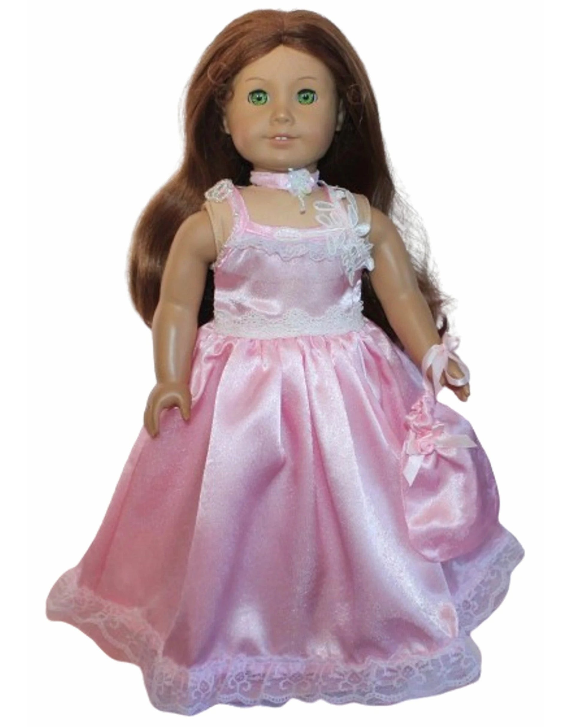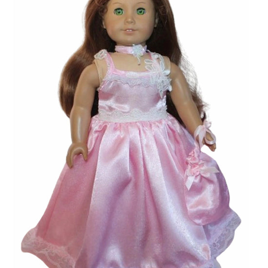 Step into enchanting playtime with this Pink Satin Ball Gown for American Girl dolls! Crafted from silky satin and sparkling with glittering beads, this gown adds instant glamour. It includes a tiny purse, a beaded choker, and matching bloomers—perfect accessories for a doll’s special occasion. Watch imagination bloom in this delightful ensemble!