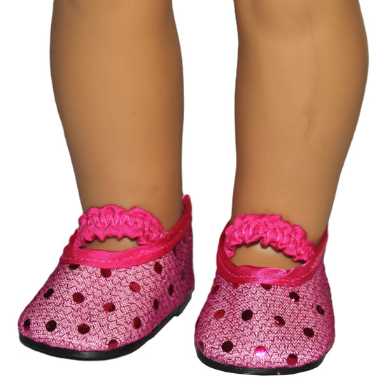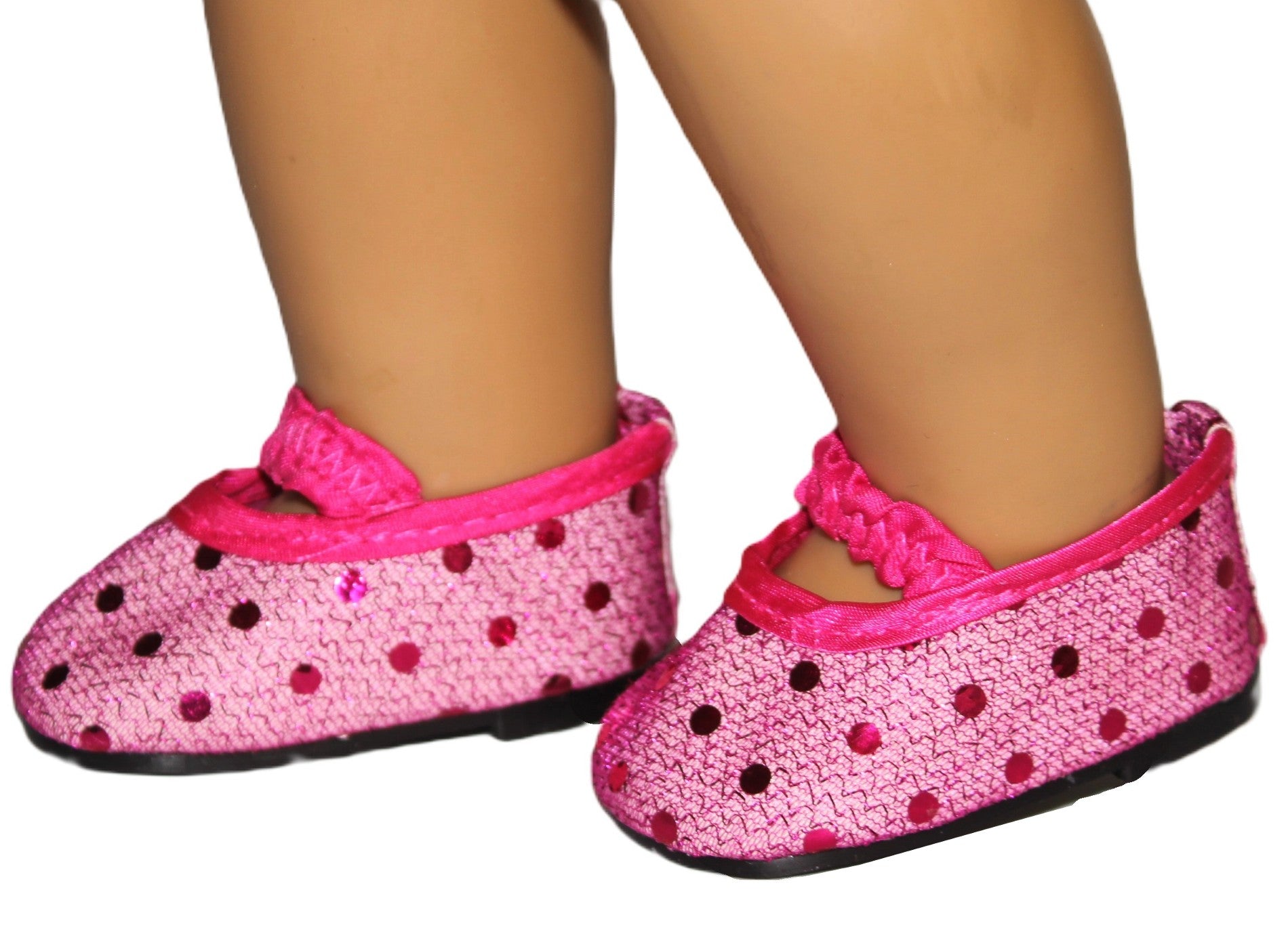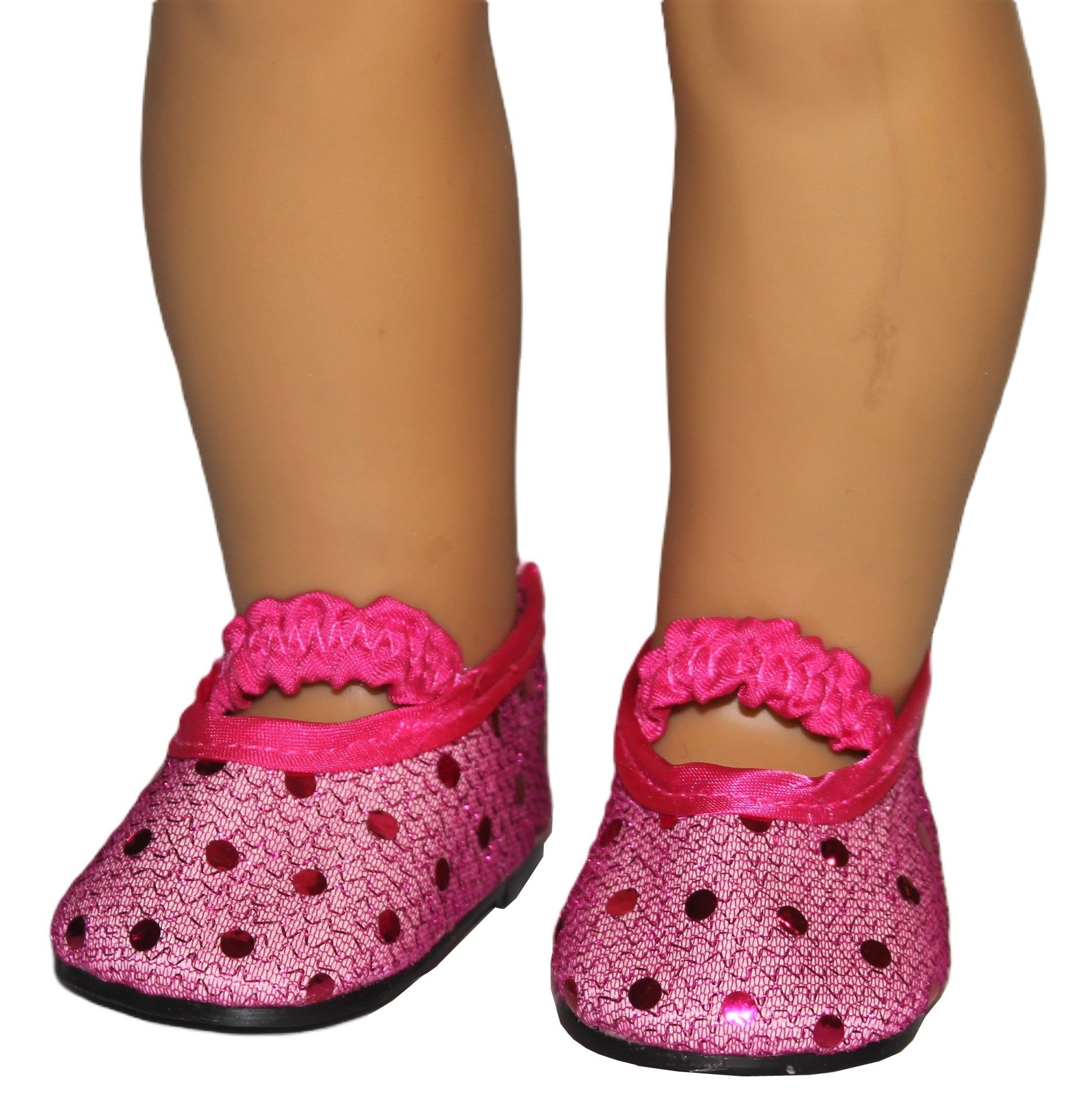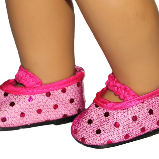 Add sparkle to your American Girl doll’s outfit with these playful pink sequin slip-on flats. Easy to wear and sure to shine, they’re perfect for dressing up any doll look with a touch of glittery fun.