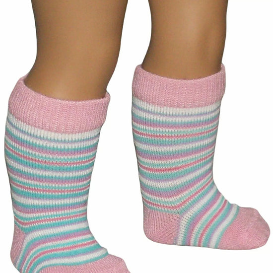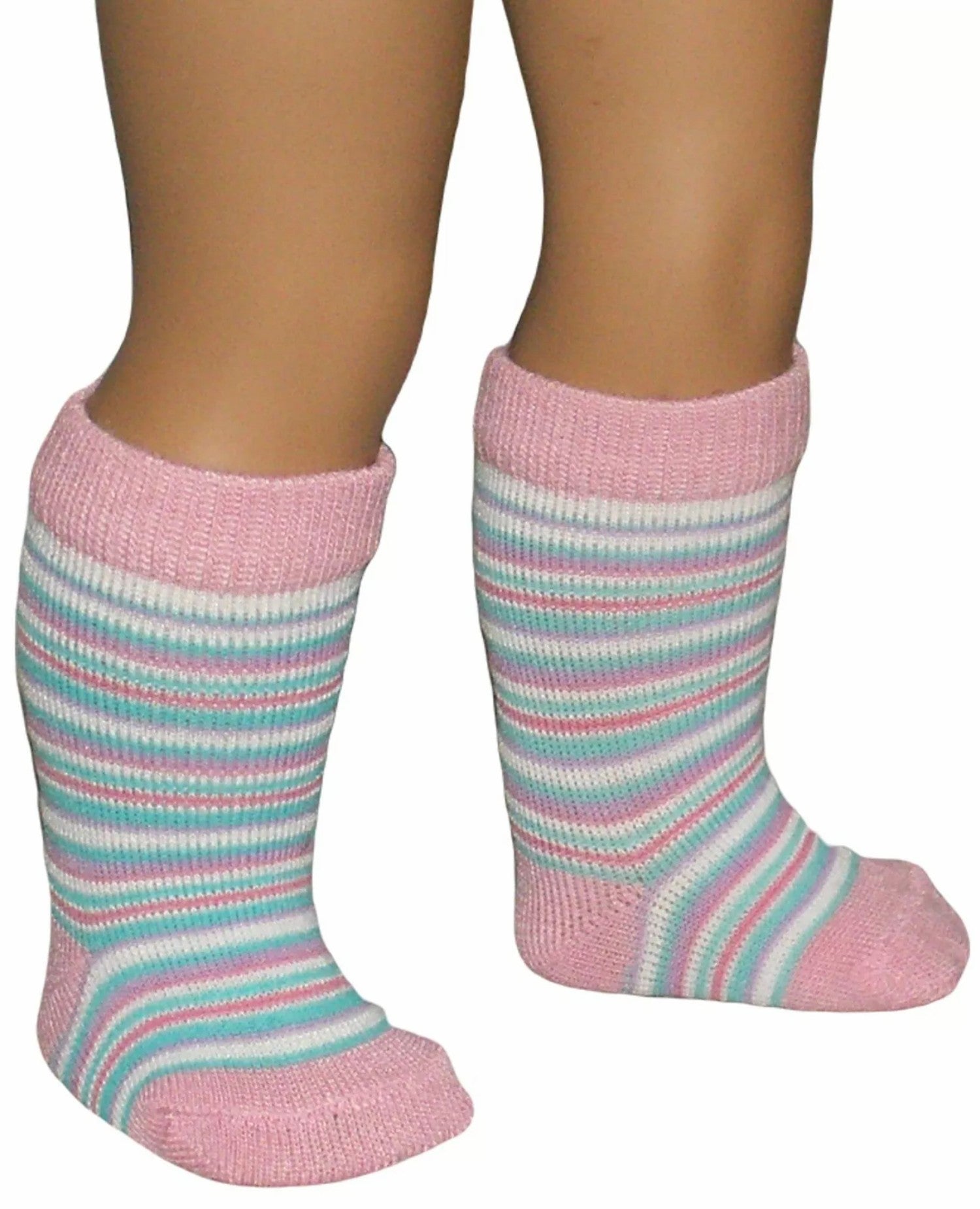Pink stripe knee high socks fit most dolls 15-21" with average size feet.