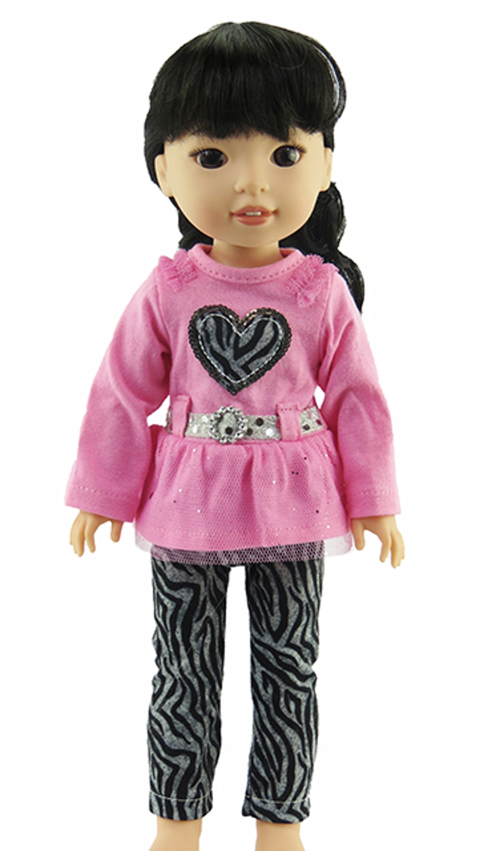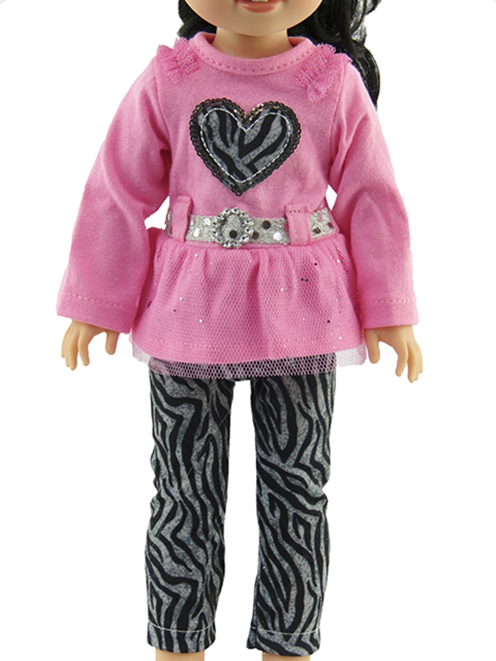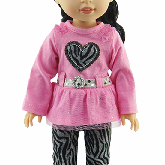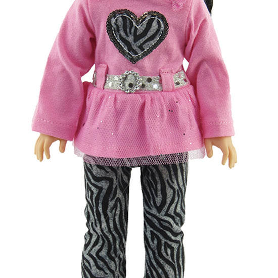 Pink tunic with a zebra heart accent. Paired with zebra print leggings.
