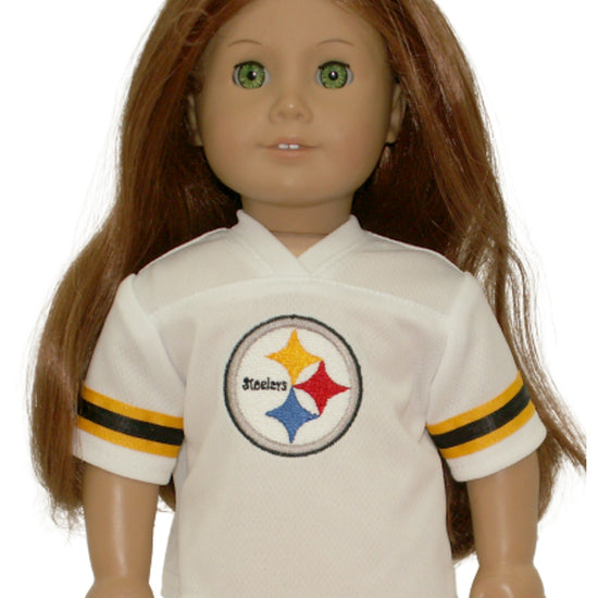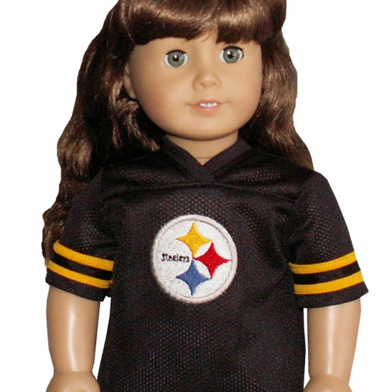 Score a touchdown with this Pittsburg Steelers inspired doll jersey! Featuring a vibrant embroidered logo on the front, it’s perfect for your doll’s game day look. Made to fit American Girl dolls, this playful outfit brings sporty fun and team spirit to every play.