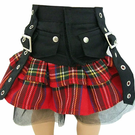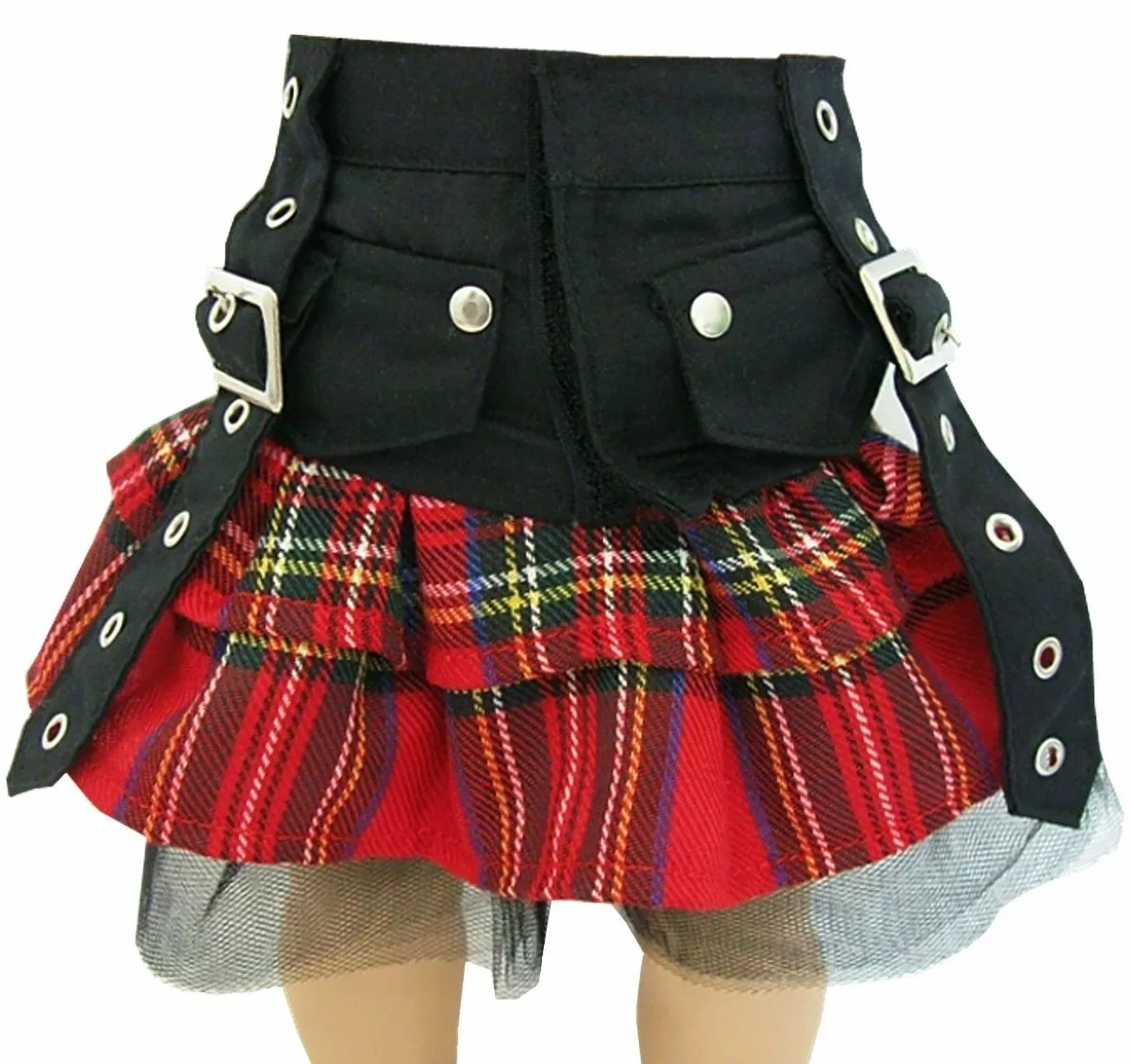 Bring some edgy style to your doll’s wardrobe with this Punk Rocker Plaid Skirt! Featuring a bold red plaid skirt paired with a black corset and a playful tulle underskirt, it’s perfect for rocking out or turning heads at doll hangouts. Ideal for American Girl dolls who love a fun, rebellious look!