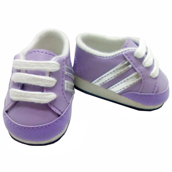 Add a burst of energy to your 18" American Girl doll’s collection with these purple athletic sneakers featuring shiny silver stripes. Designed for a perfect fit, they bring sporty flair and a touch of glam to every doll’s playtime adventures. Ready, set, style!
