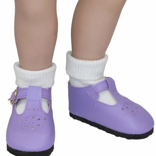 These purple T-strap dress shoes are tailor-made for your My Twinn doll. With secure buckle closures, they stay snug on her feet while adding a stylish, classic flair. Perfect for dressing up any outfit with a touch of timeless charm!
